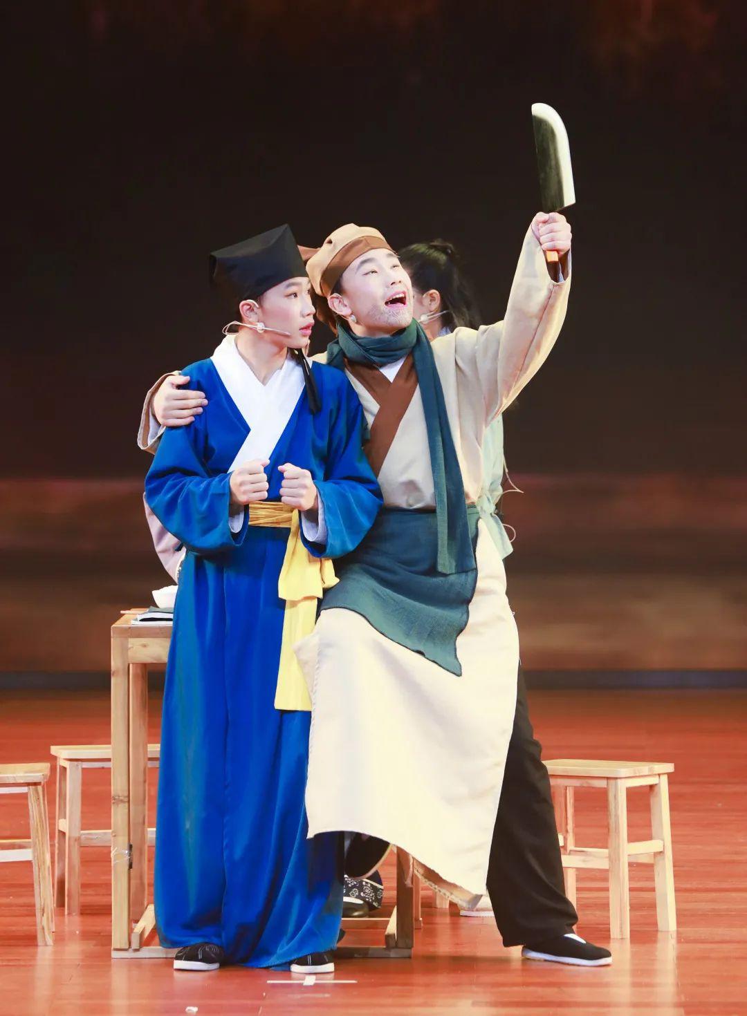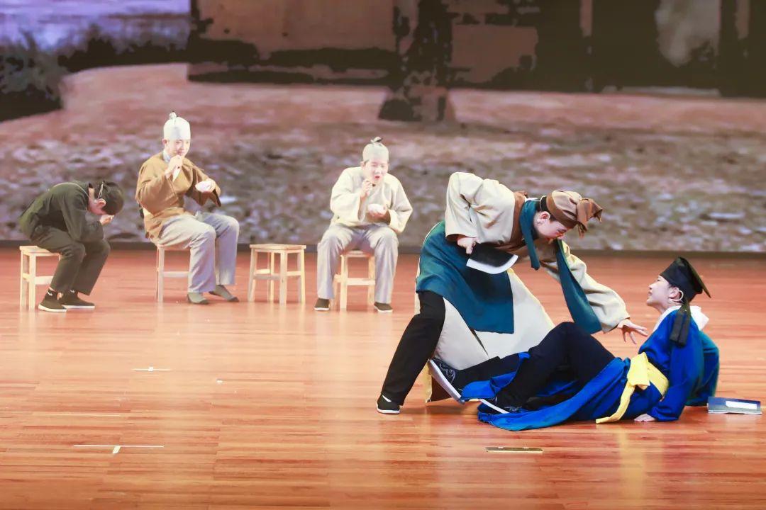名著新编《范进中举》是基于学科融合课程理念,结合七年级语文学科阅读经典名著活动,暑假期间由同学们择选出经典名篇,刘婵、商利民、黄雨莹三位老师进行指导。