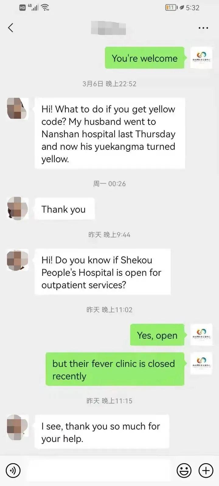2月23日,蛇口境外人员管理服务中心将服务电话0755-26678381和微信号在深圳日报、深圳外事等平台向广大外籍居民广而告之,让更多的外籍居民个性化的问题能第一时间得到妥善解决,截至目前,中心已回答上百个求助电话。