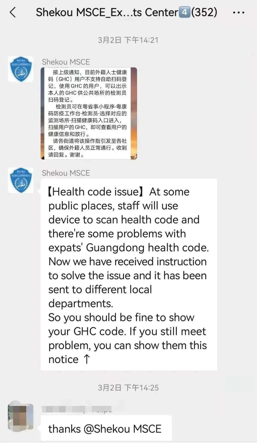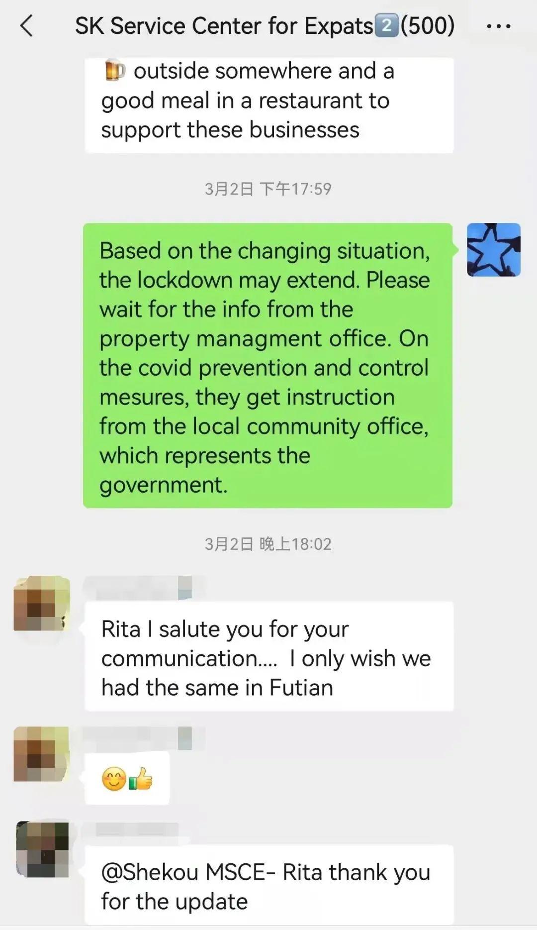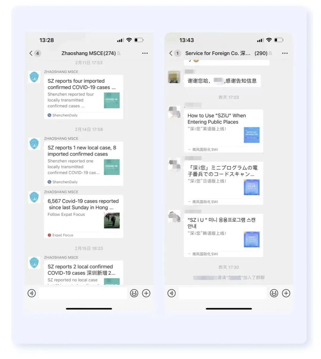 在外籍人员聚集的招商、蛇口许多区域被划为封控区、管控区、参照管控区管理区和防范区后,区委外办在南风国际化SWI公众号上发布双语说明,短时间阅读即超过2000。