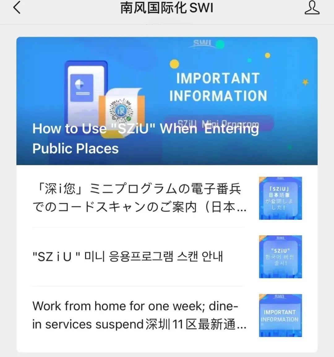 联合南山区人才工作局、区政数局推出多语种“深i您”小程序电子哨兵扫码指引,方便外籍居民出行。