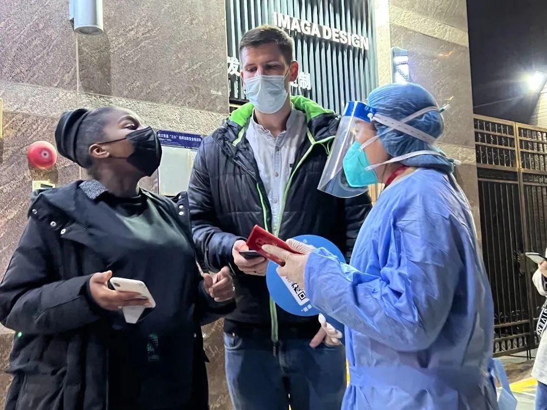 各涉外服务平台社工均下沉社区,在外籍人士居住较为密集的社区协助核酸检测工作和数据排查工作,确保外籍居民核酸检测工作的顺利进行。
