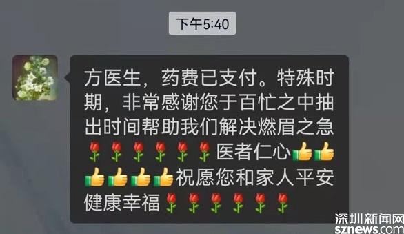 “特殊时期,非常感谢您于百忙之中抽出时间帮助我们解决燃眉之急,医者仁心,祝愿您和家人平安健康幸福”柴女士专门发了信息表示感谢。