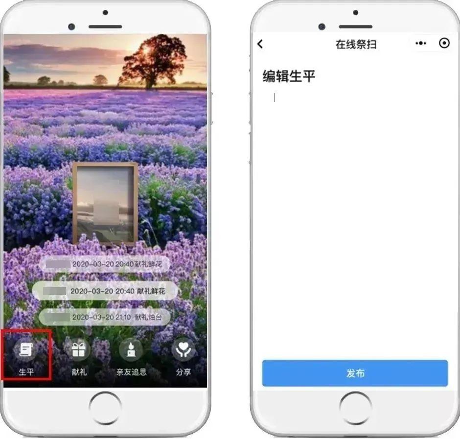 创建保存逝者空间后,点击“生平”可以编辑逝者生平事迹。