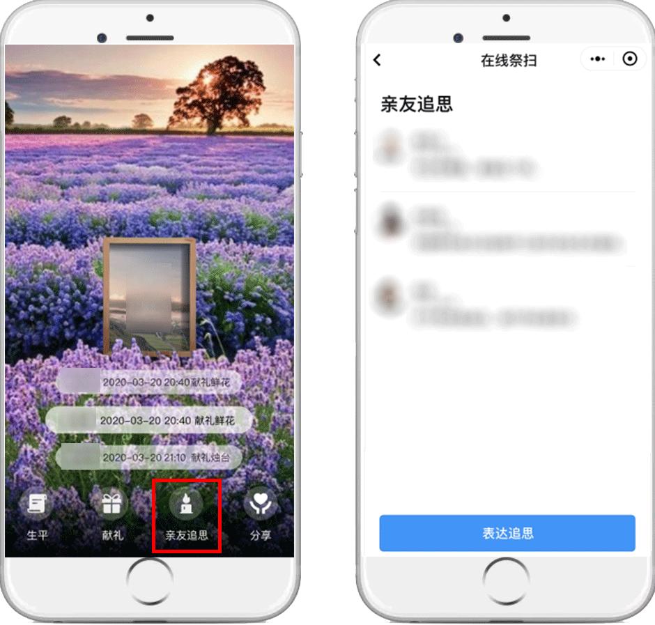 亲友还可以点击右下角的“亲友追思”,发表文字表达追思。