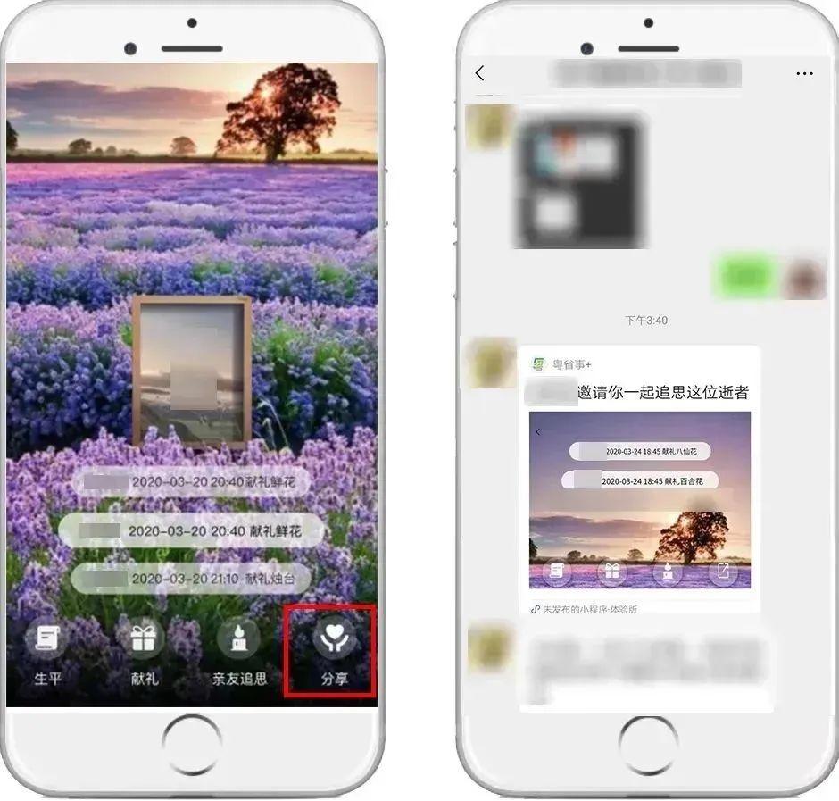 点击“分享”,即可分享链接给亲友,邀请远方亲友一起缅怀先人。