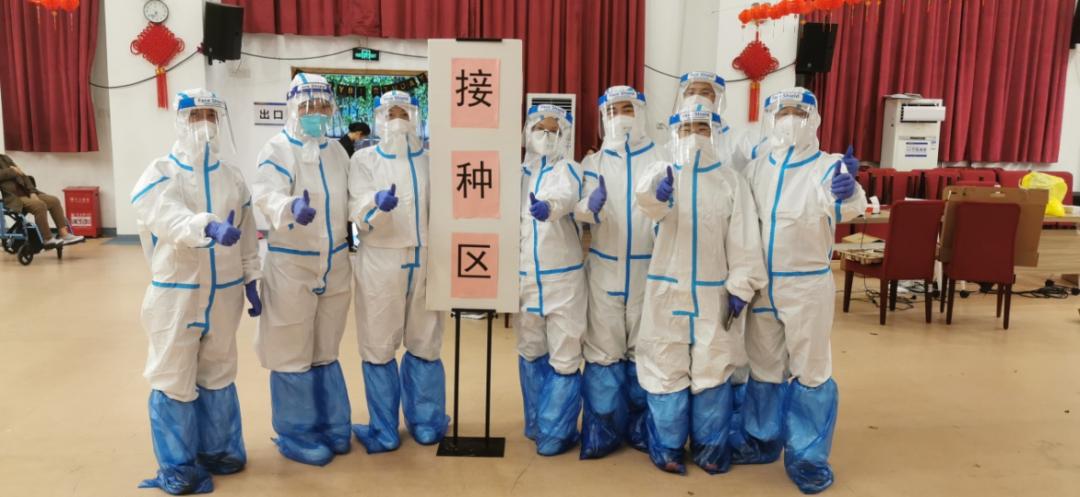 为配合疫情防控措施,接种团队成员需穿上“大白”全套防护“装备”,在N95口罩和面屏的双重防护下,连耳朵也被包裹进防护服,老人又大多存在听力减退,为保证与老人们的顺畅沟通,医务人员就尽量提高声量,反复确定老人听清、理解,几小时下来,嗓子就不同程度的沙哑。登记医生、接种护士、保障医护以及信息保障工程师,在防护服下连续8小时不停歇,共同为老人搭建起疫苗接种的“绿色通道”。