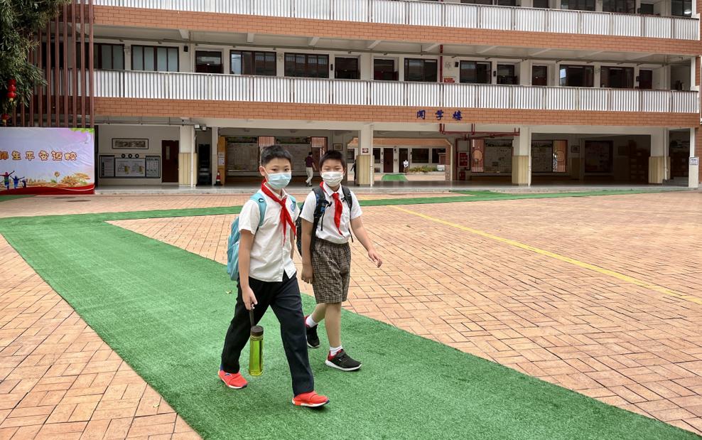 在课间活动方面,西丽小学进行区域划分,保障学生健康的大前提下,加强学生的体育锻炼和课外活动。在师生就餐方面,采取送餐到班、教室午休的方式解决学生午托问题。黄湘岳表示,要进一步优化学生课余活动区域的划分,既要严防病毒的传播,也要保证孩子们有充足的活动区域,学校要继续完善相关防疫举措以及课间活动方案,学生的学习和体育锻炼都要兼顾。
