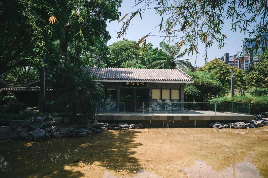 书吧外观古色古香、古典别致,绿树掩映更添韵味。公园里有这样一处幽静的书院,市民赞不绝口。