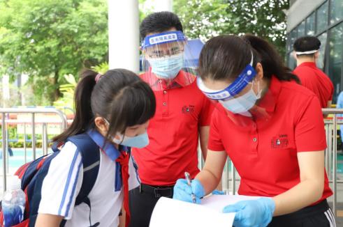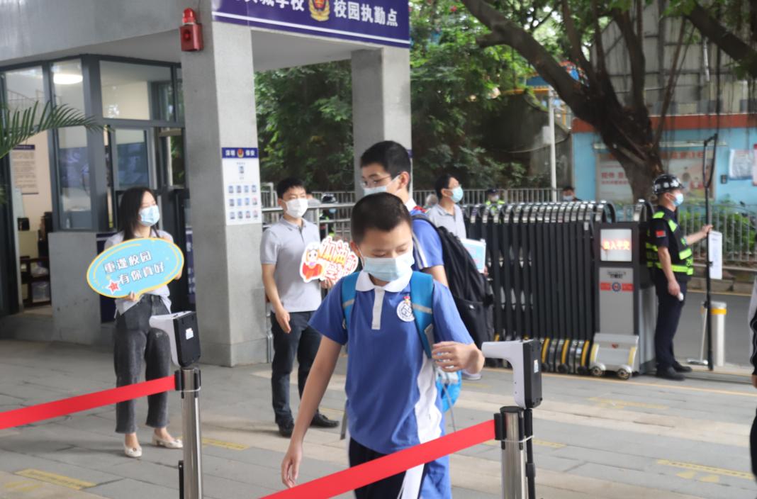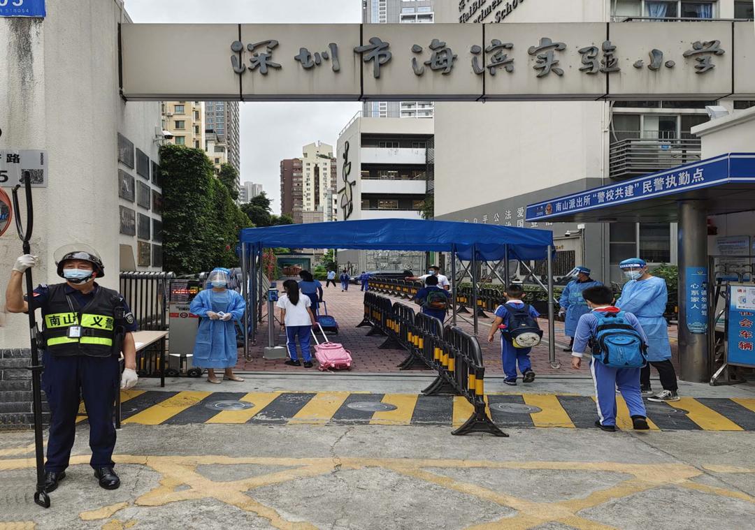 4月13日清晨,深圳市南山区华侨城小学严格按照“分区域、分年级、分楼层”的防控管理要求,指引900多名同学顺利返校。