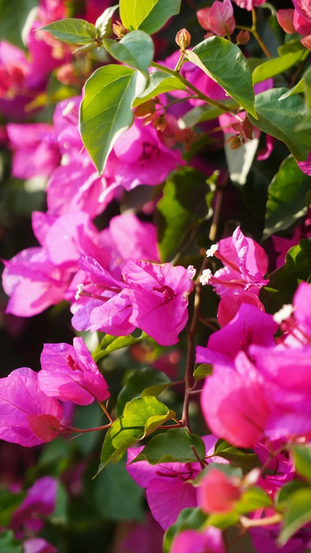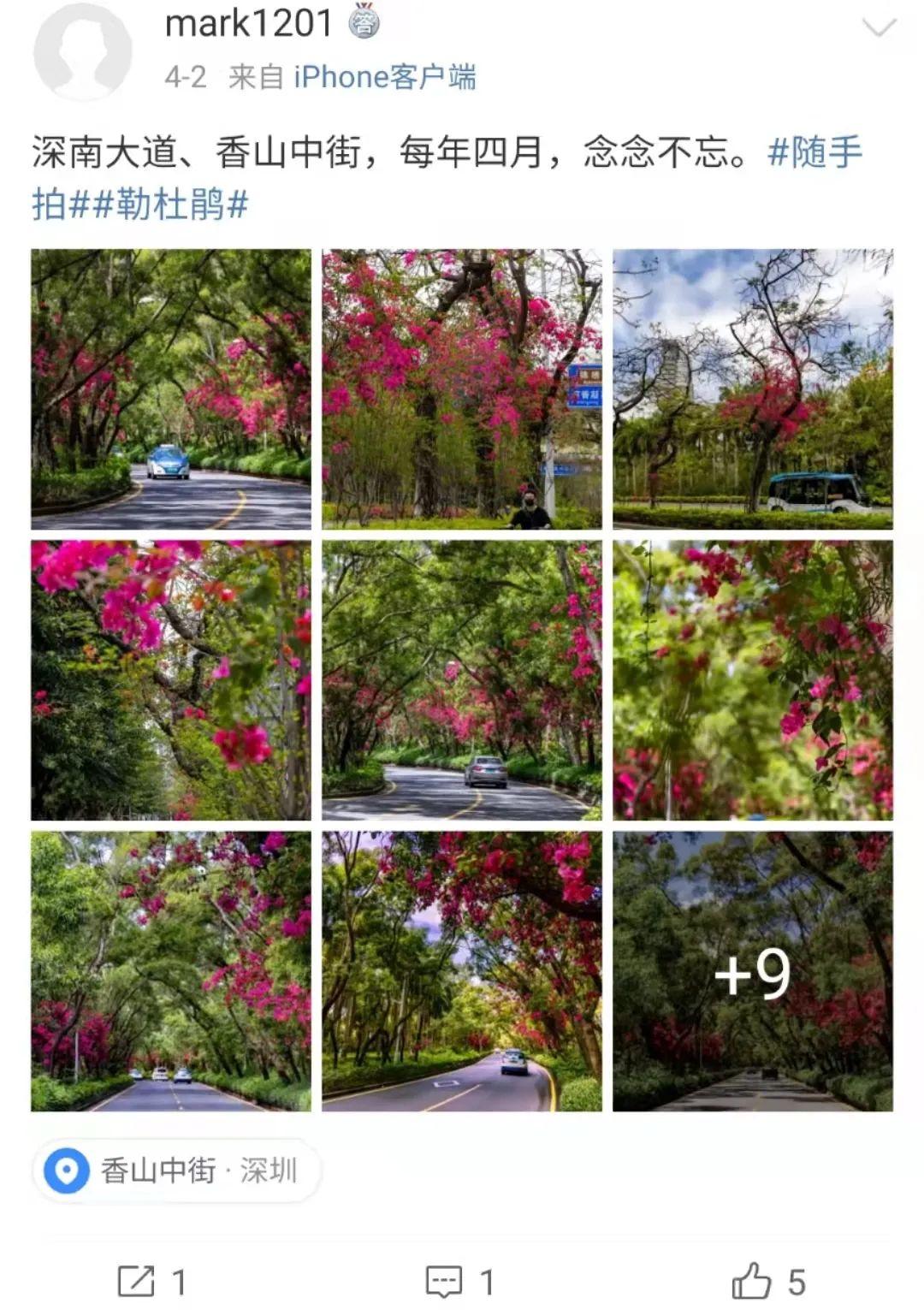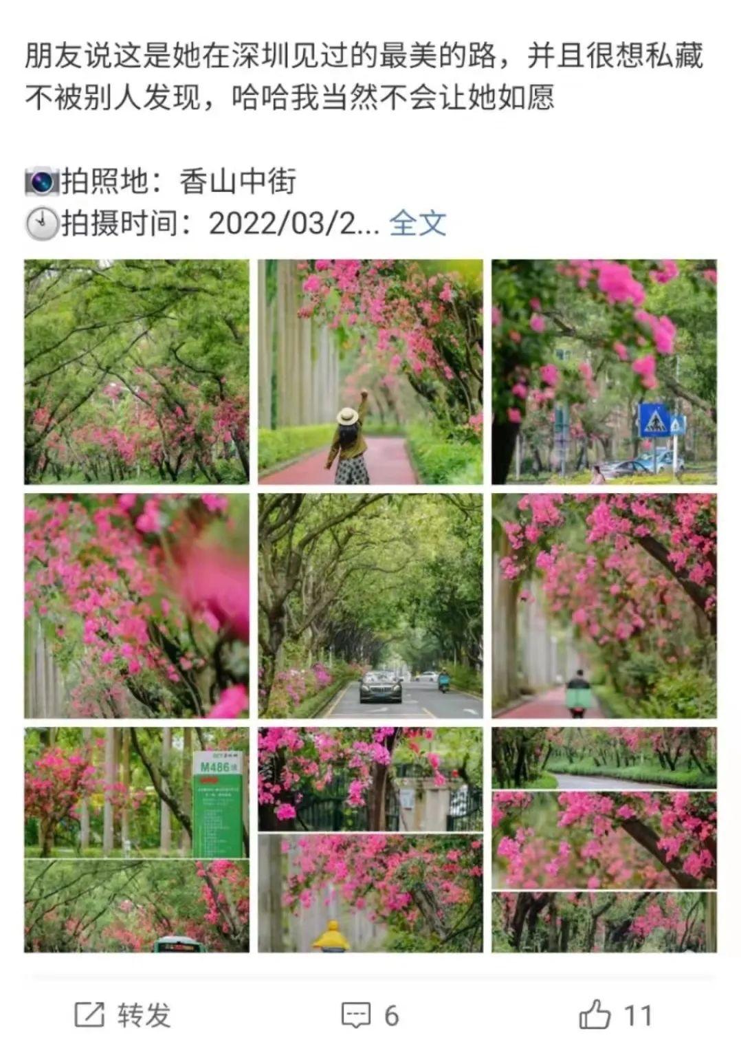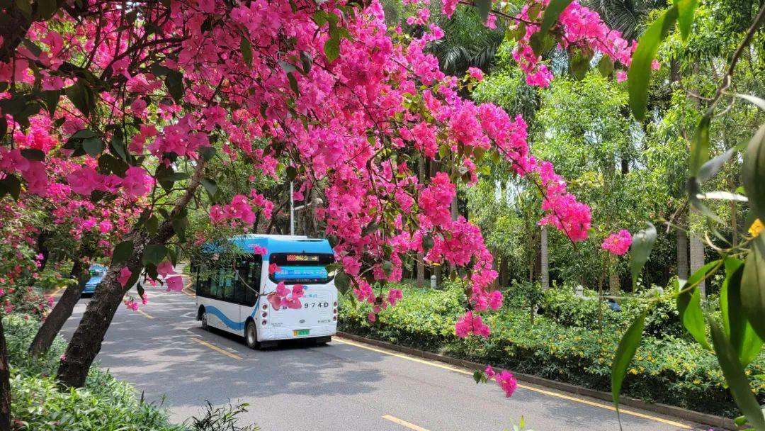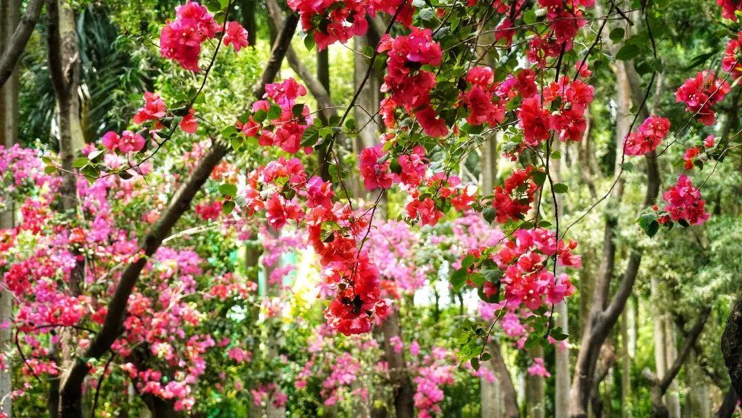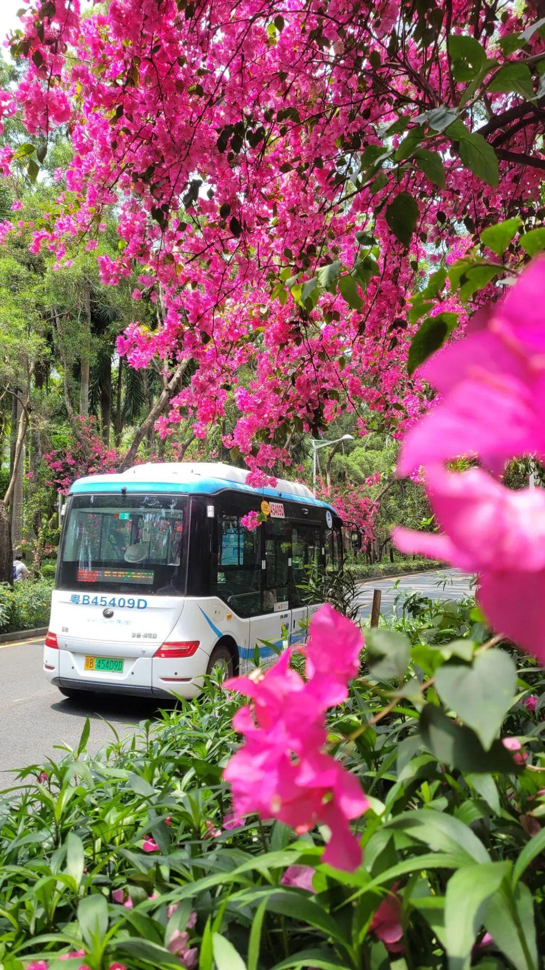 4月的南山,阳光灿烂,花开满城。在南山区华侨城香山中街可以看到,簕杜鹃开满枝头,流连一路,不少摄影爱好者到深圳这条长约1800米的网红簕杜鹃花道打卡,在繁花绿树的映衬下,整条马路被装饰得多彩明艳,格外浪漫。