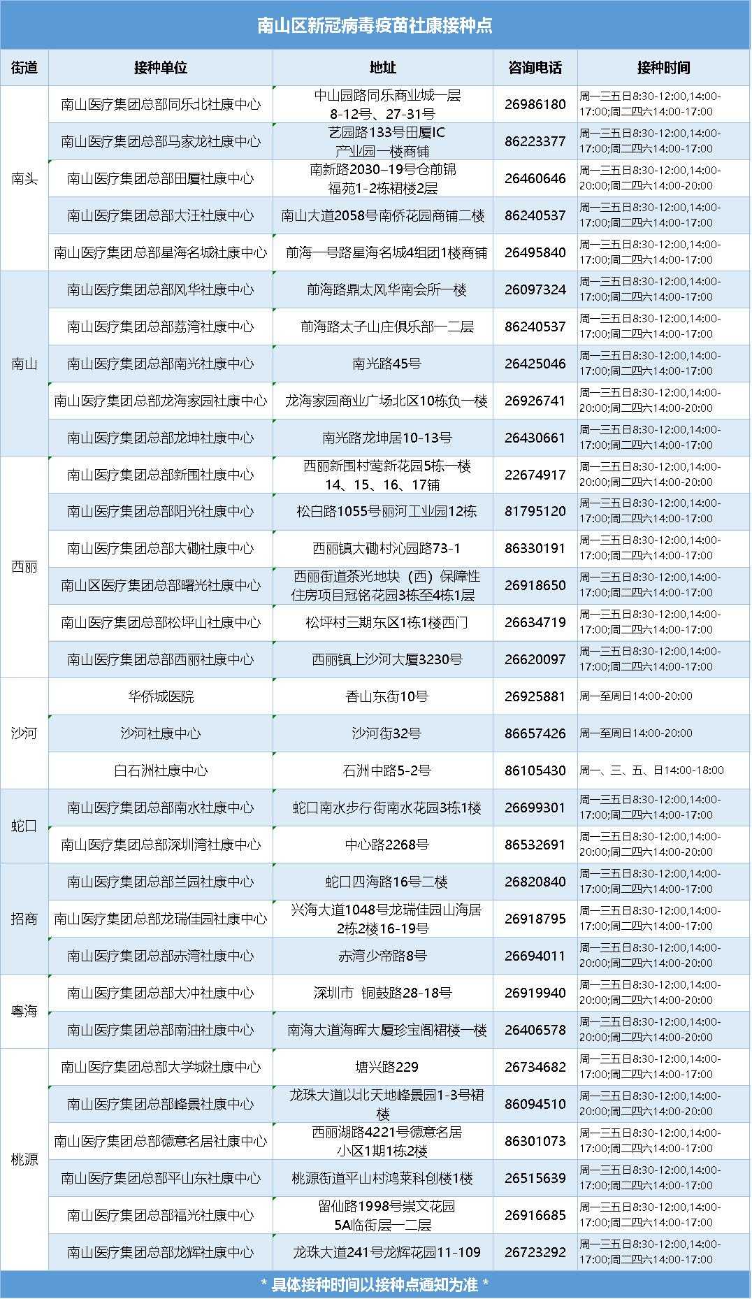 南山区新冠疫苗社康接种点