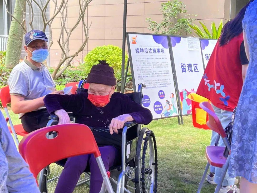 南山区在各个街道、社区设置流动疫苗接种点,为符合接种条件的老人提供就近接种服务。
