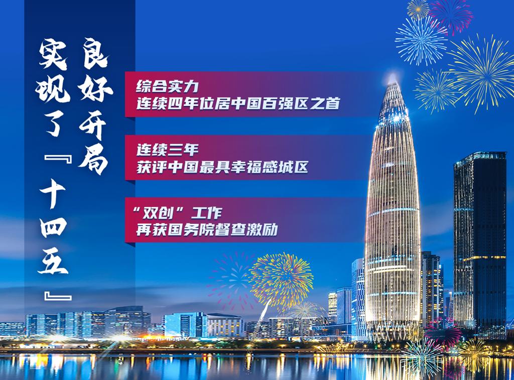 黄湘岳指出,过去的2021年,是党和国家历史上具有里程碑意义的一年。区政府坚持以习近平新时代中国特色社会主义思想为指引,在市委市政府和区委的正确领导下,在区人大、区政协的监督支持下,圆满完成了区七届人大八次会议确定的目标任务,综合实力连续四年位居中国百强区之首,连续三年获评中国最具幸福感城区,“双创”工作再获国务院督查激励,实现了“十四五”良好开局。