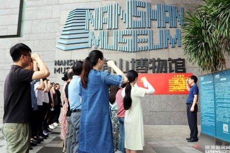 当天下午,在南山博物馆门口,预备党员进行入党宣誓,其他人员一起重温入党誓词,他们高举右拳、庄严宣誓,声音嘹亮。随后党员们参观了“南山改革开放史”、“近代南山”等展厅。沿着时间的轨迹,他们仔细观察馆内展品,在一张张照片和一件件展品中领略着深圳改革开放波澜壮阔的历程,学习先辈们变革创新的精神。