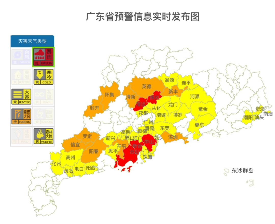 今天03时35分,深圳气象台将分区暴雨黄色预警升级为橙色。