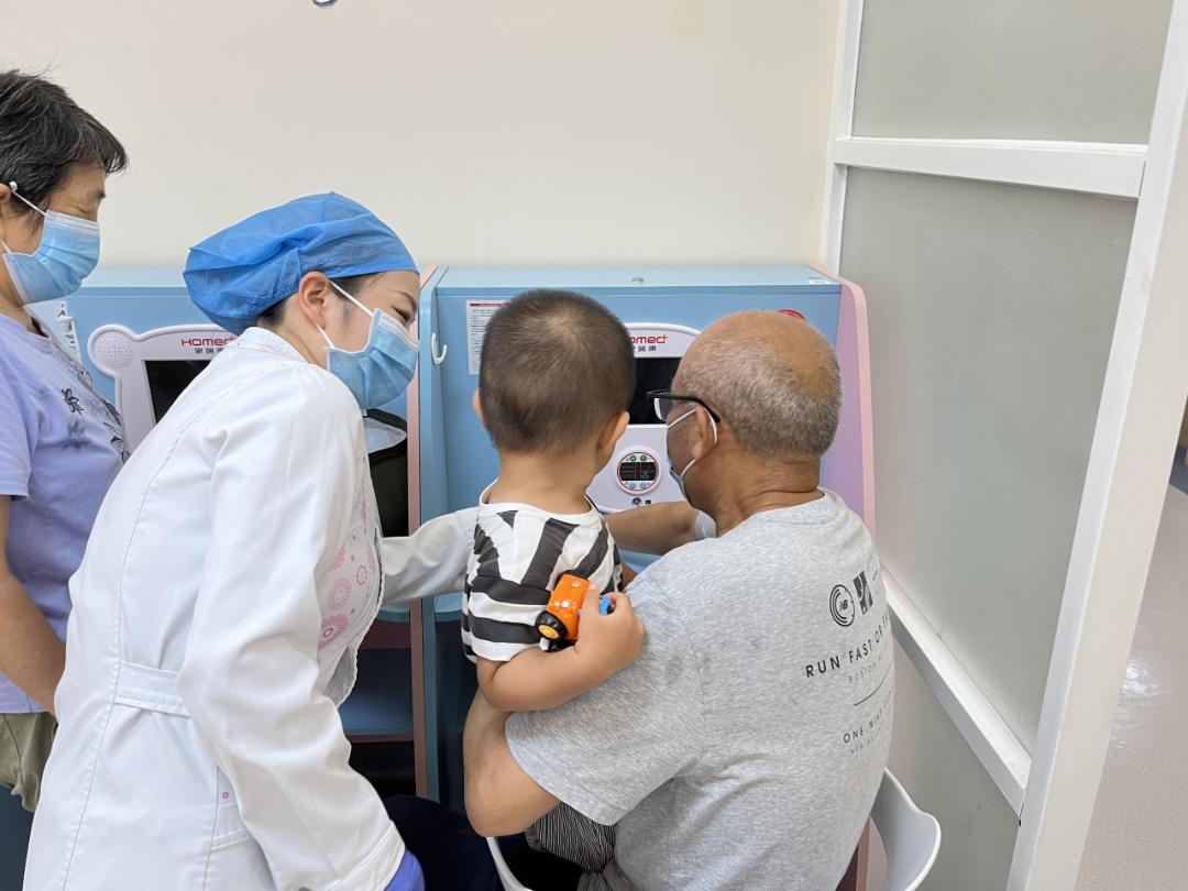 为了减少患儿哭闹,隔离室的护士每天除了日常护理,大部分时间就抱着宝宝,和宝宝说话、唱歌,放音乐给宝宝听,直到宝宝安静地入睡。