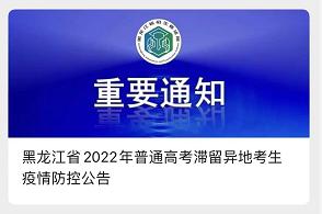 5月17日,黑龙江省招生考试院发布黑龙江省2022年普通高考滞留异地考生疫情防控公告。