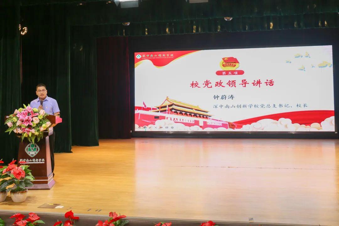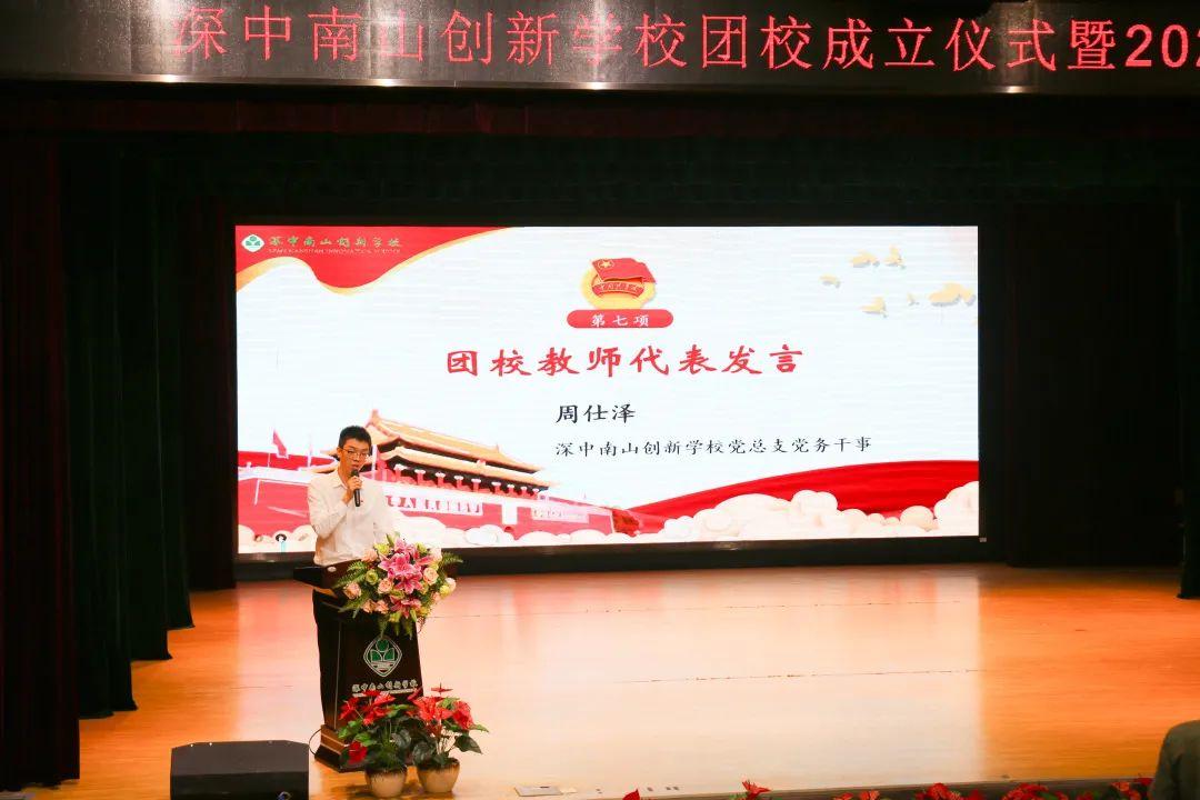 深中南山创新学校始终坚持探索“党团队一体化”建设,让红色教育在团队之间与党团之间,实现有序衔接和顺利过渡。会上,南山区团区委学少部部长宋婉玲宣读学校团校成立批复文件,勉励学校加强对广大青年团员的培训和教育工作,使之走向更加规范化和制度化的道路。