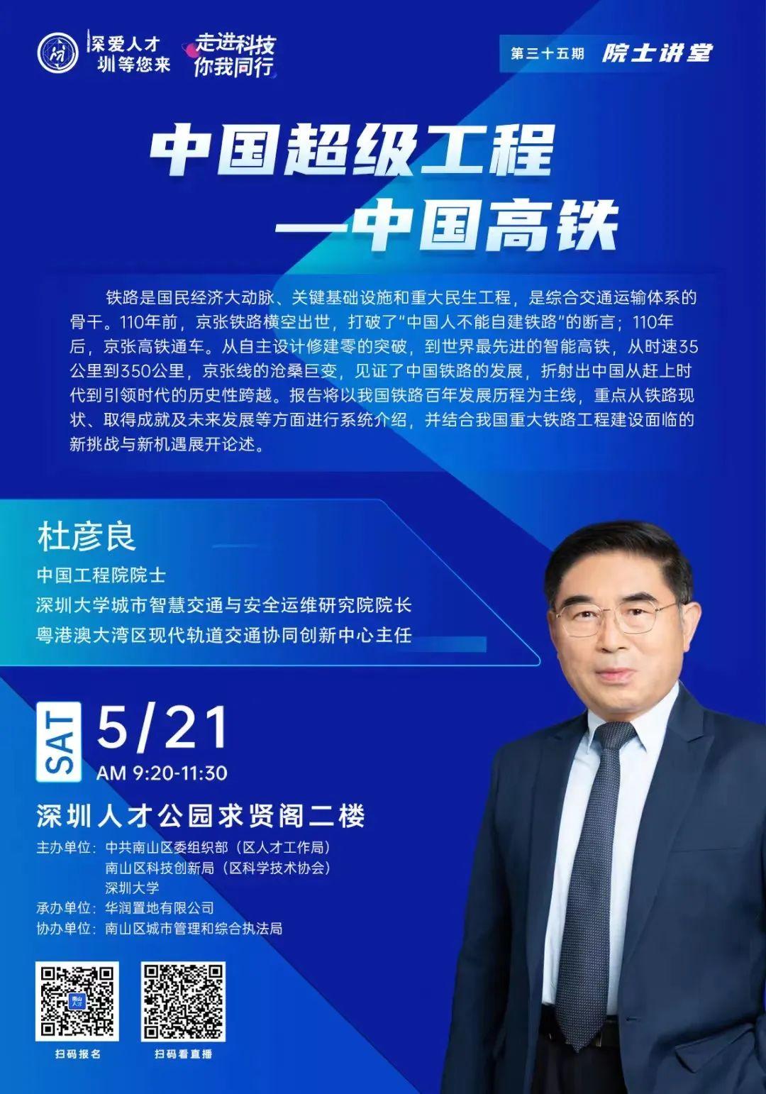 全国科技活动周期间,南山区将在深圳人才公园求贤阁同步开展“院士讲堂”活动。