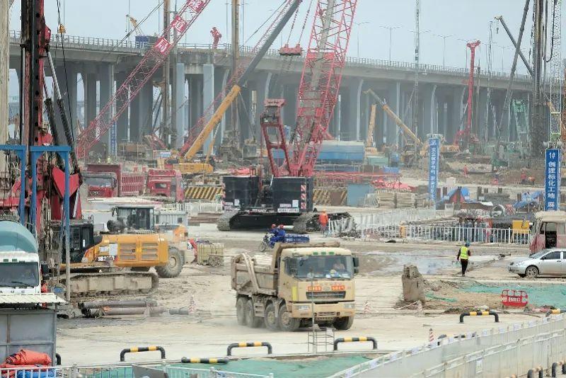 在地铁12号线赤湾停车场施工现场可以看到,赤湾停车场已基本成型,全体参建者正努力投入施工生产,现场操作塔机、汽车吊、挖掘机、轧路机等100多台大中小型机械设备连续运转。