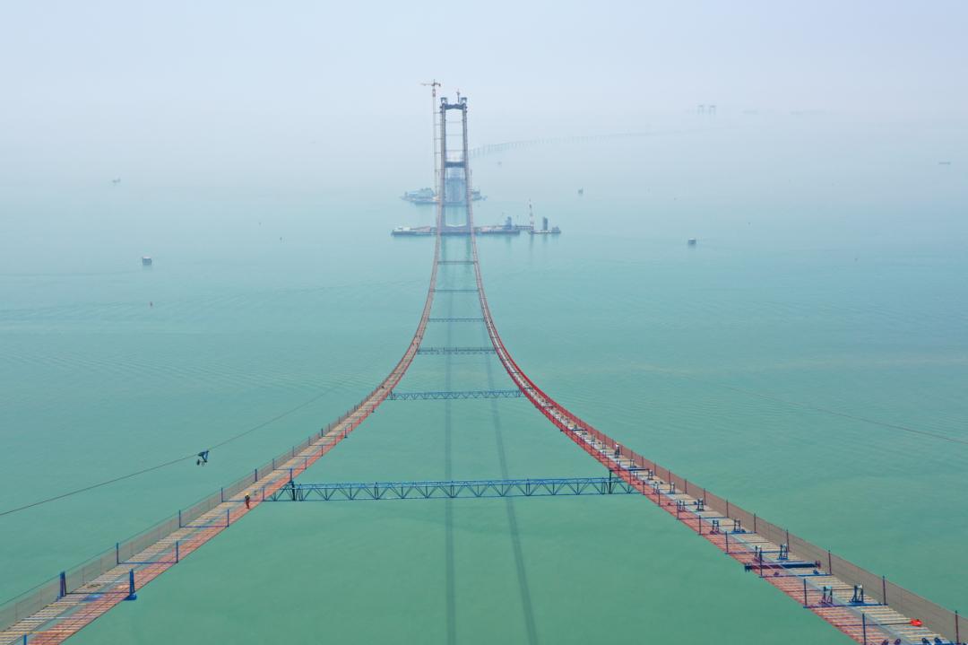 其中,伶仃洋大桥是项目关键控制性工程之一,主跨长1666米,主塔高度为270米,相当于90层楼高,是世界上最大跨径海中钢箱梁悬索桥和世界上最高通航净空尺度的跨海桥梁。