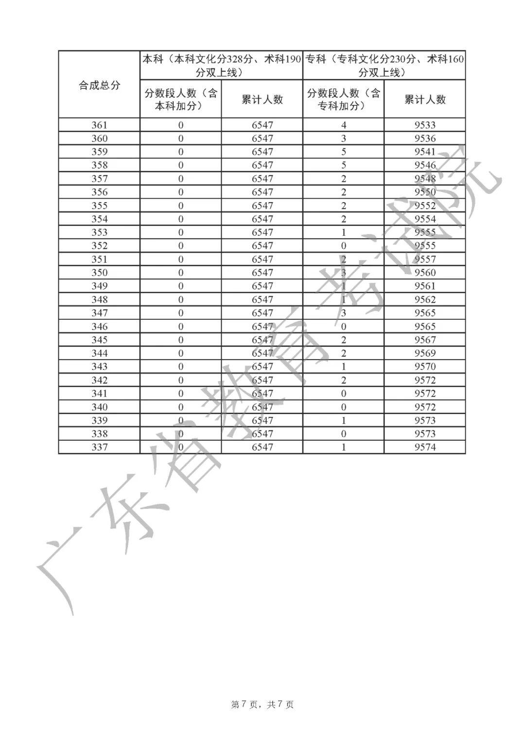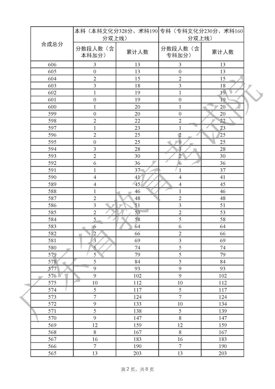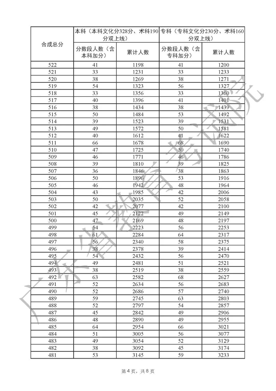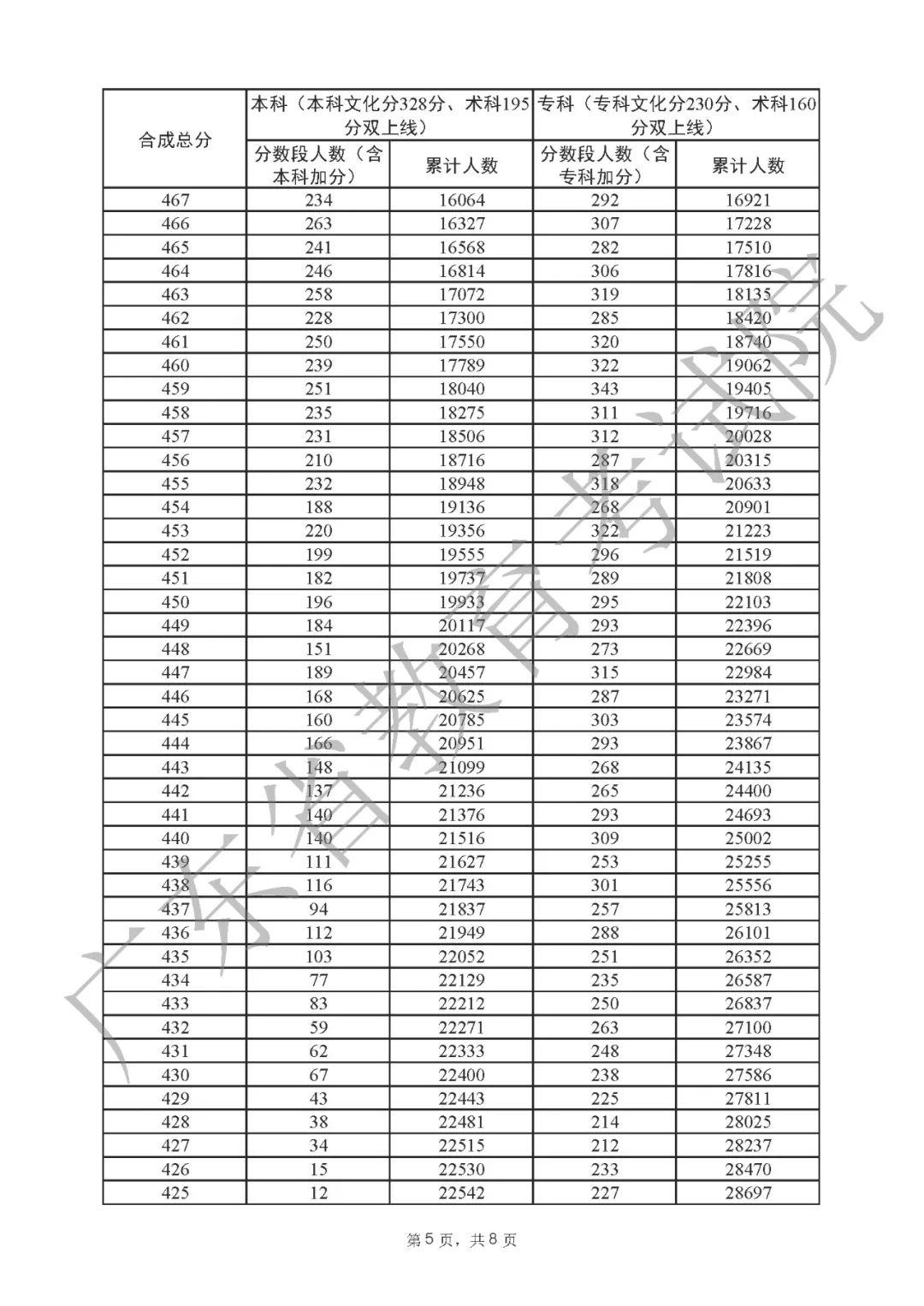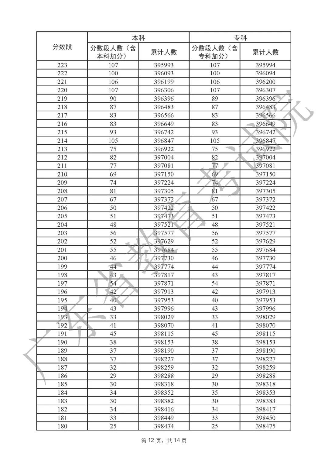 2022年广东高考“一分一段表”