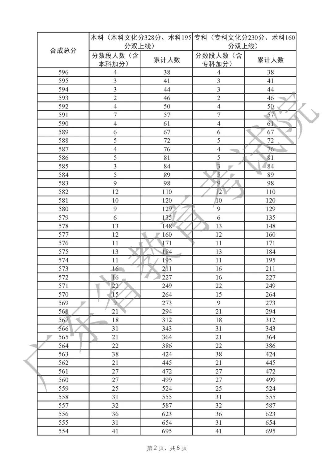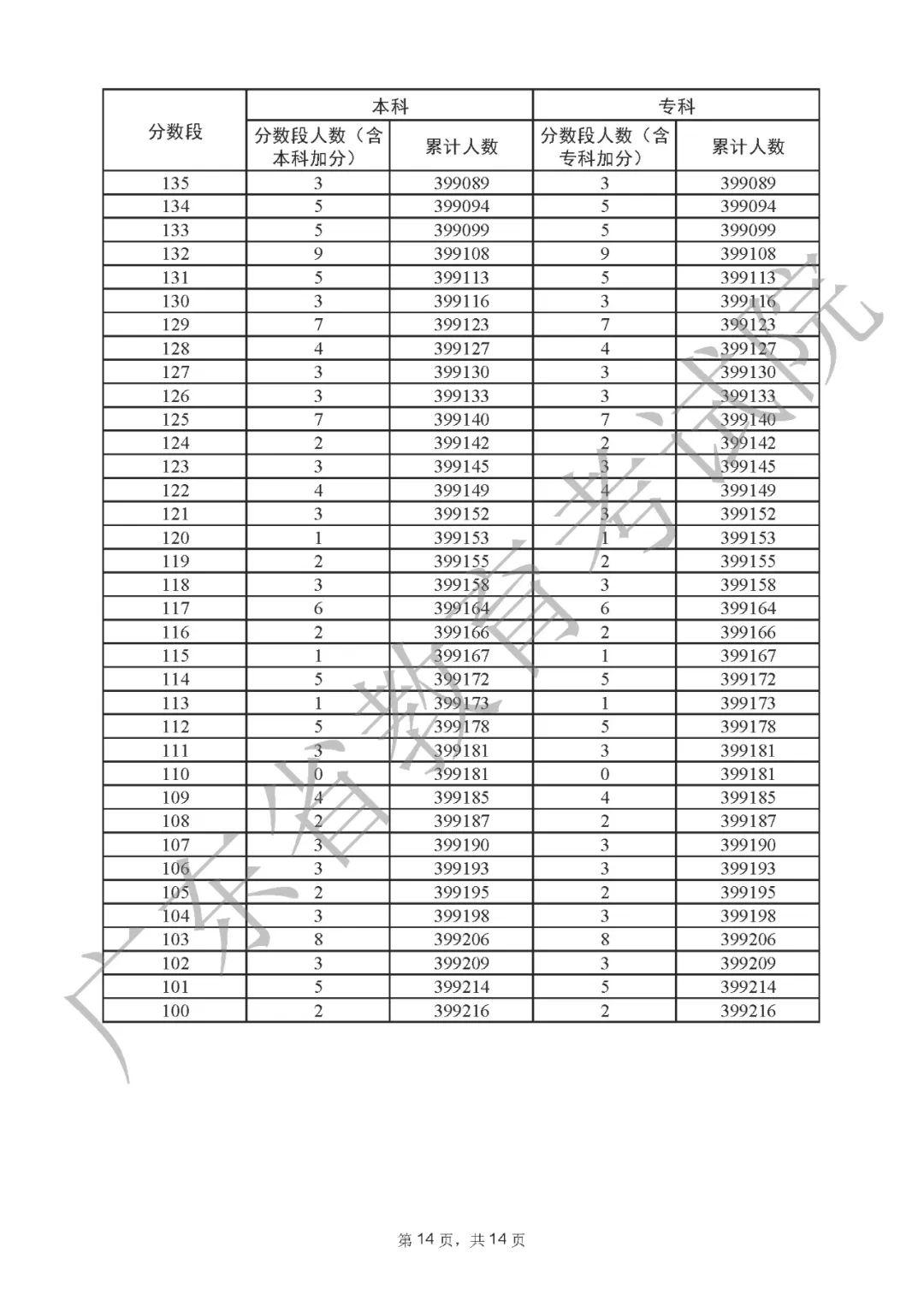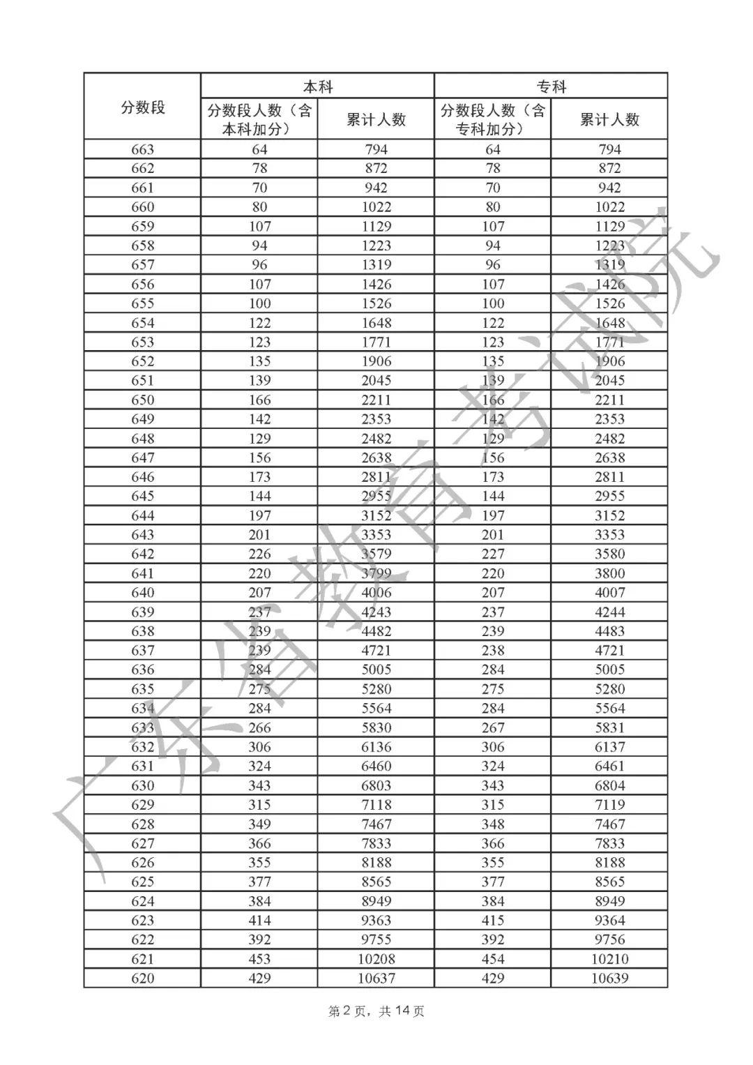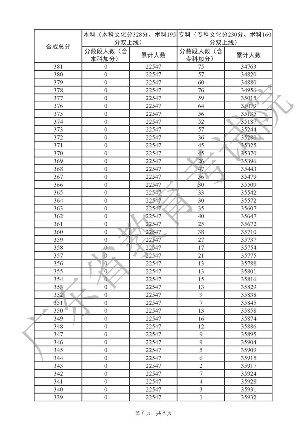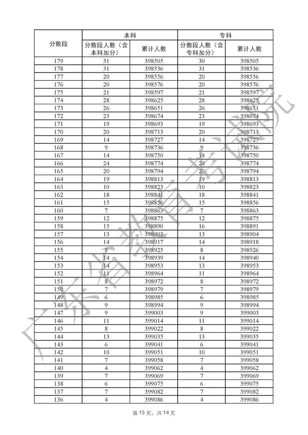 2022年广东高考“一分一段表”