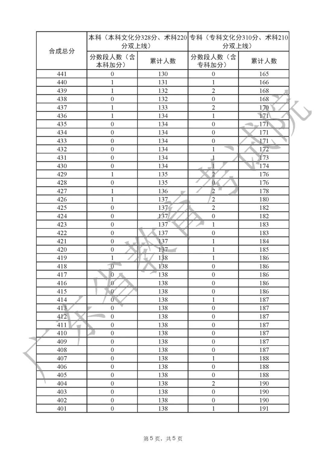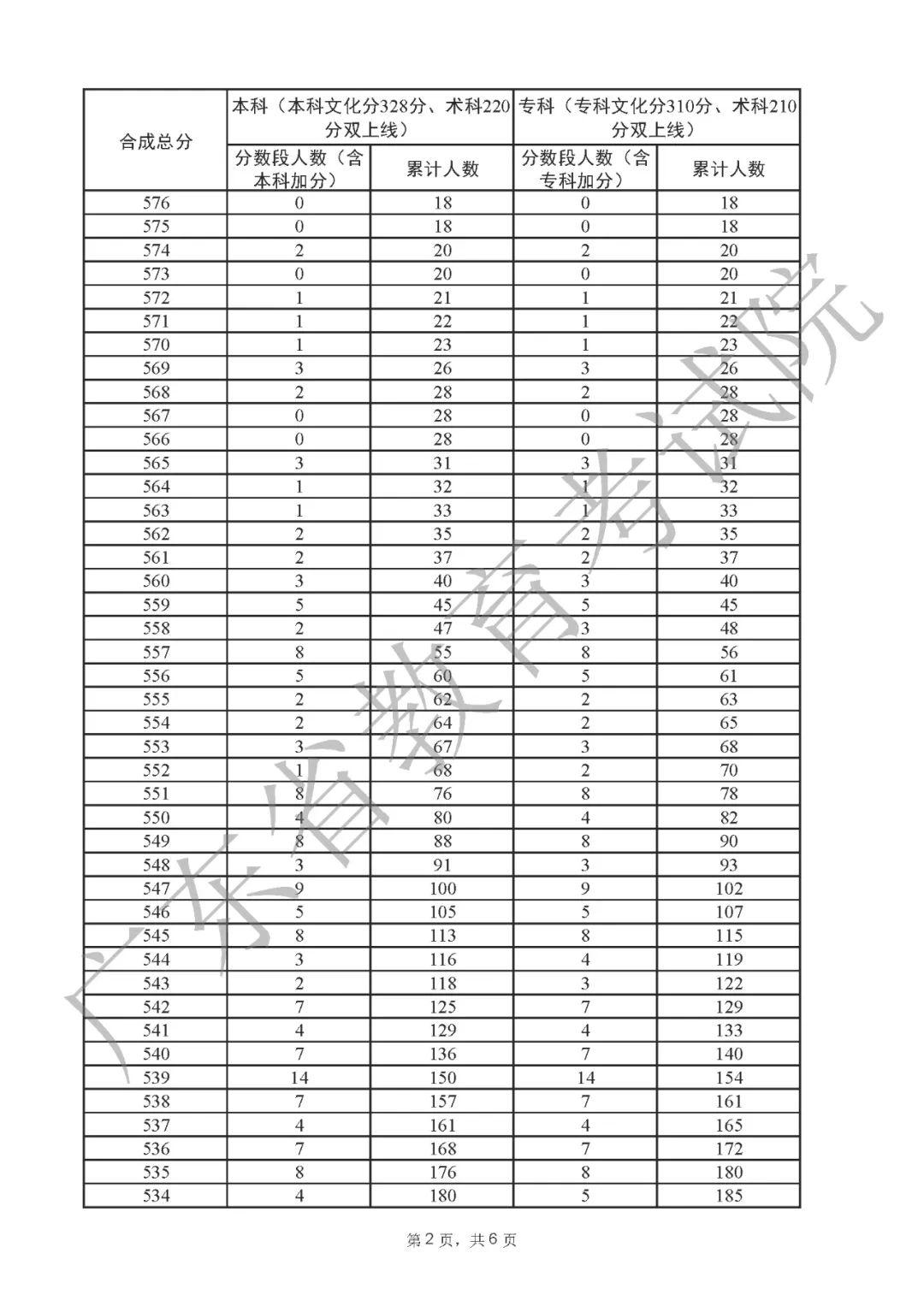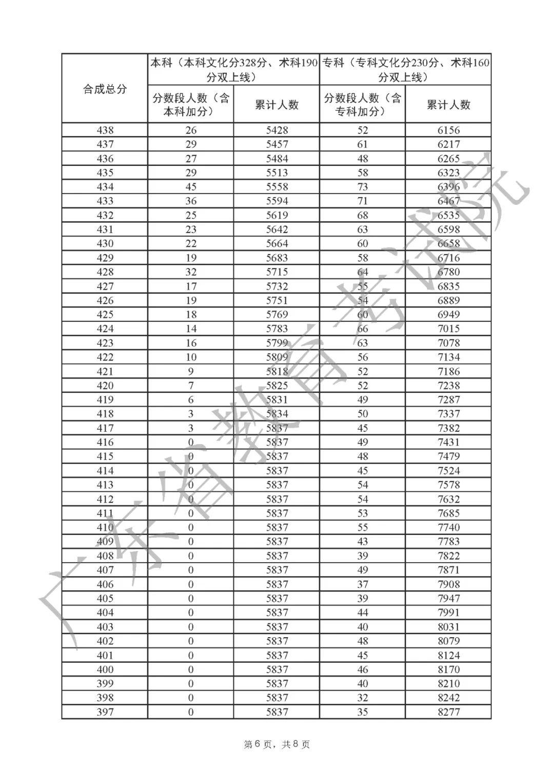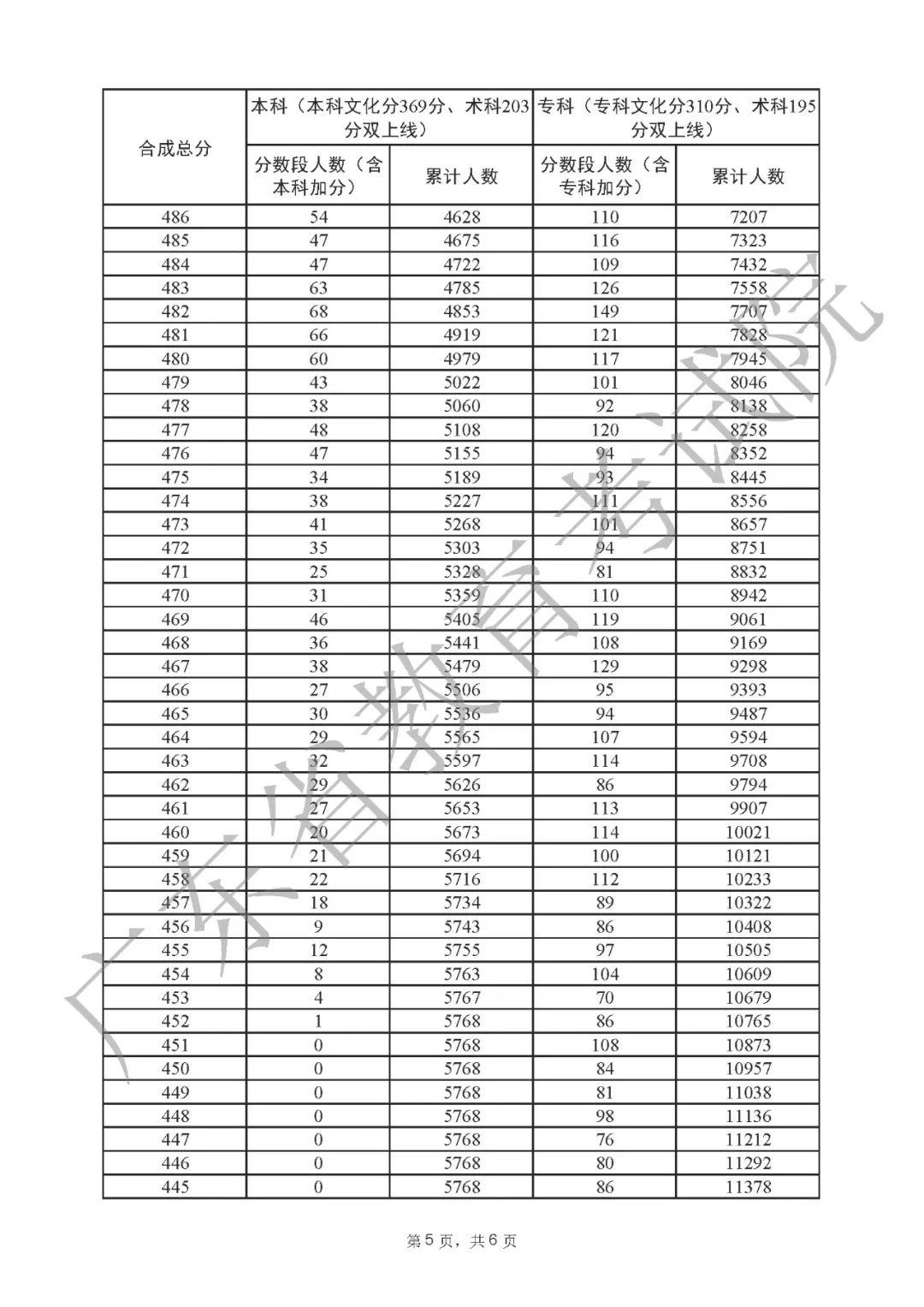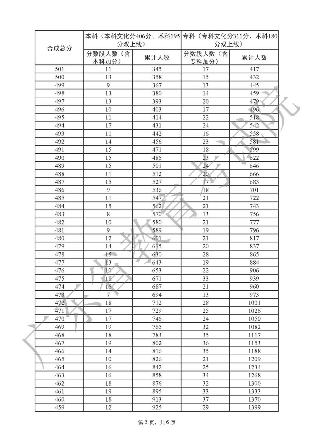 2022年广东高考“一分一段表”
