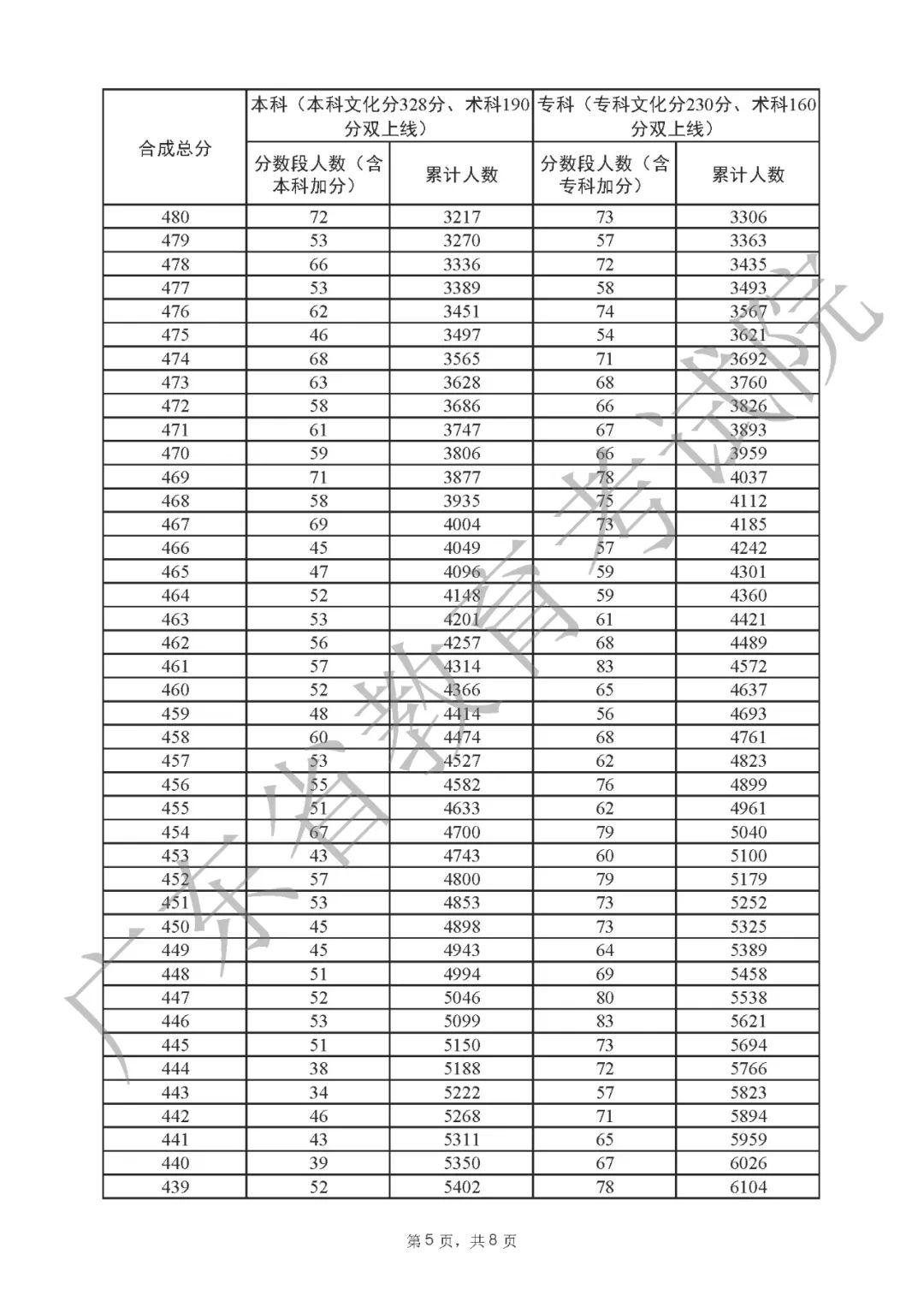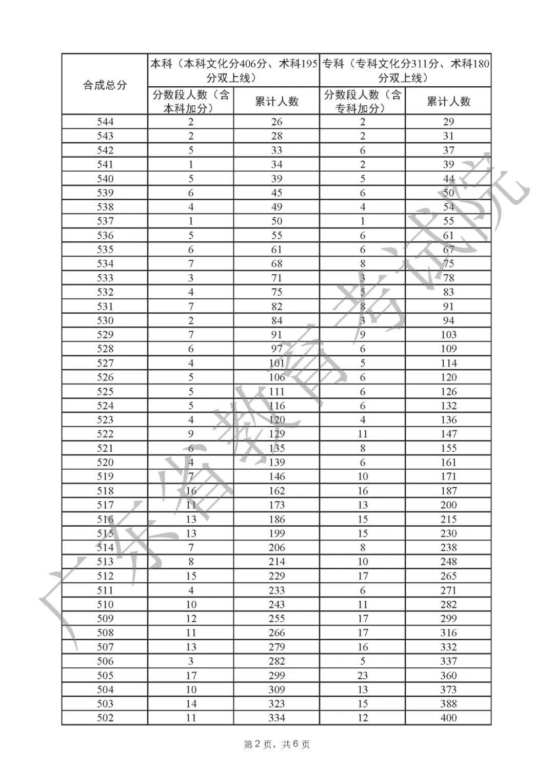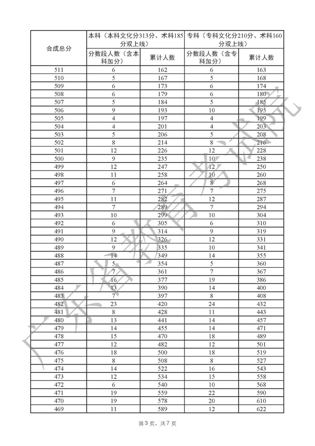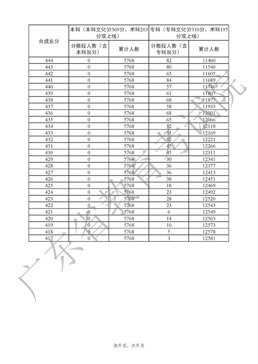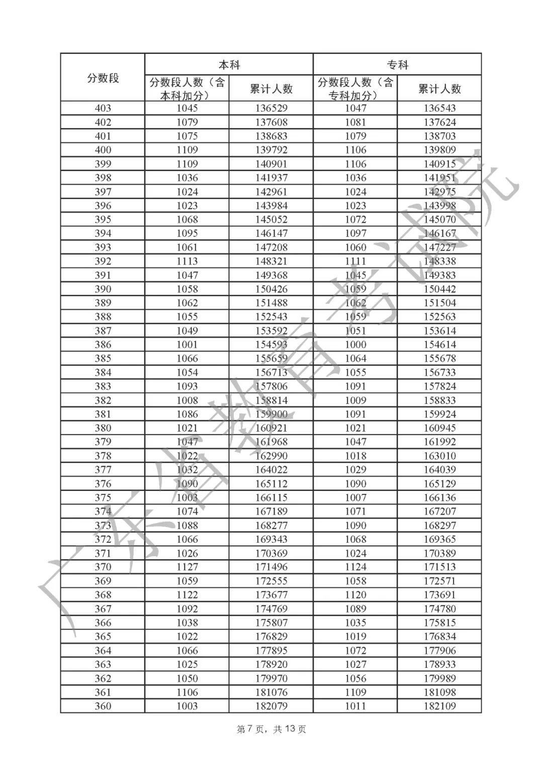 2022年广东高考“一分一段表”