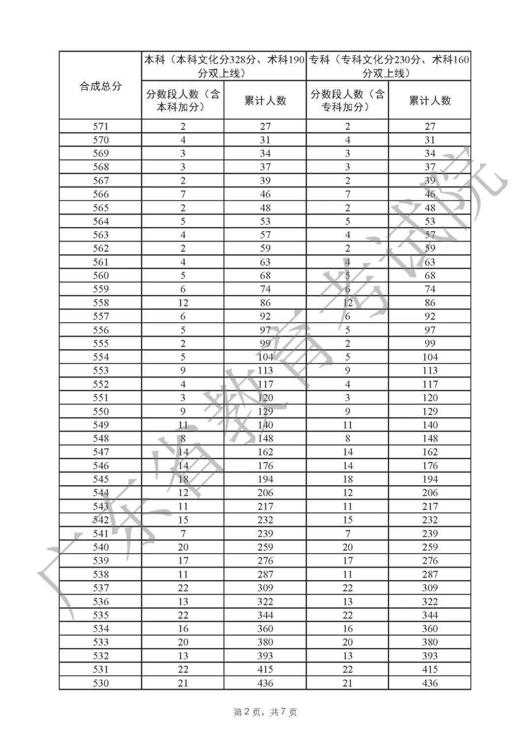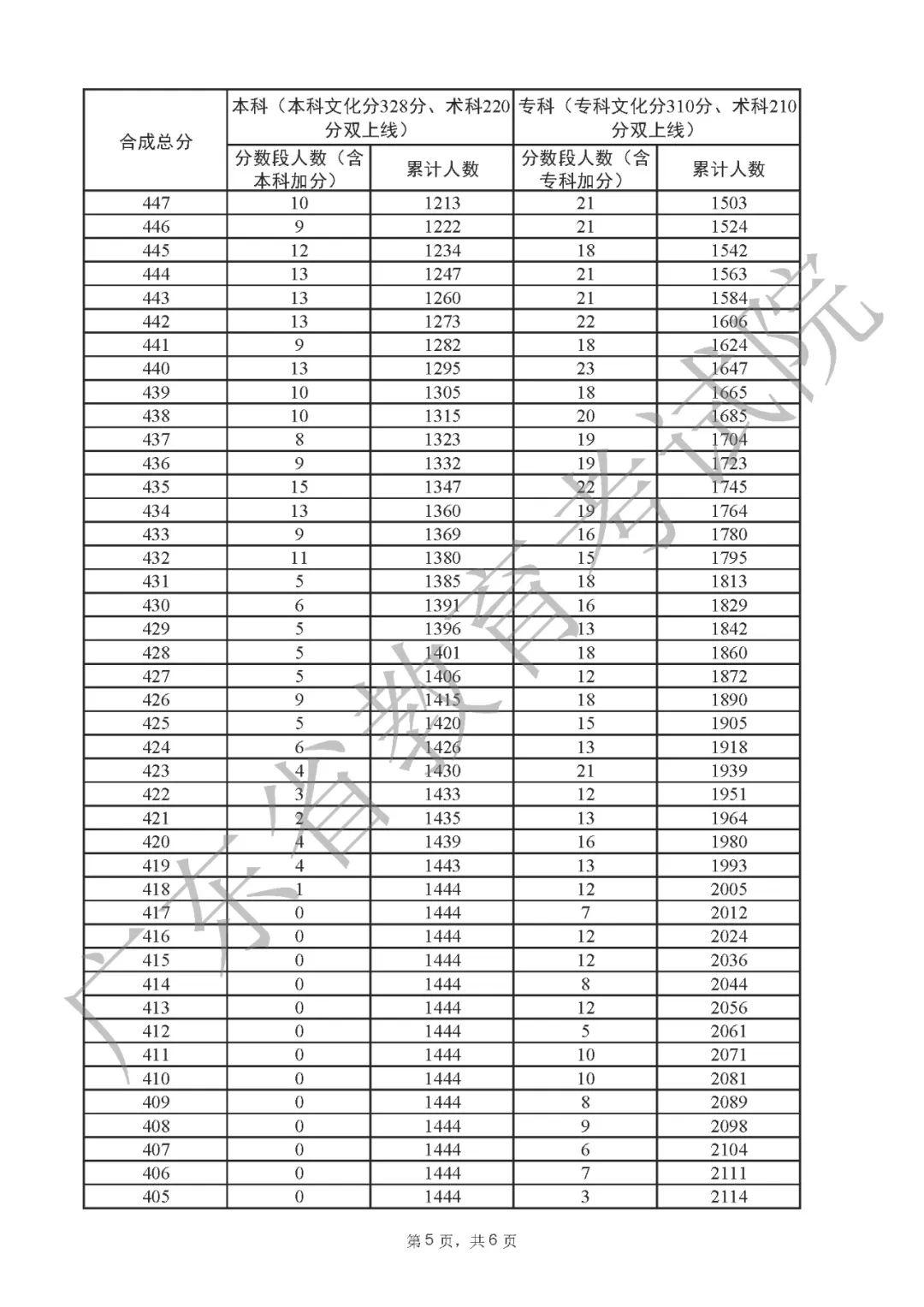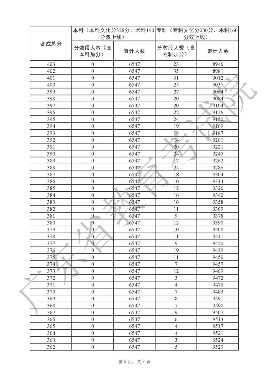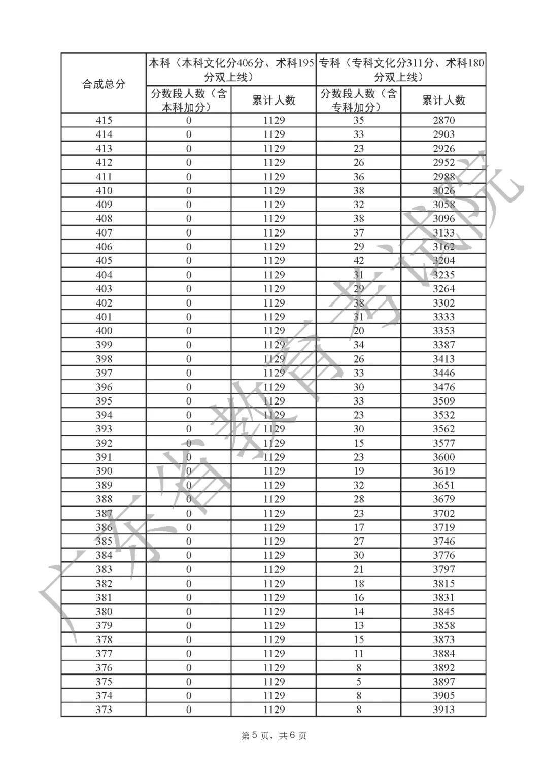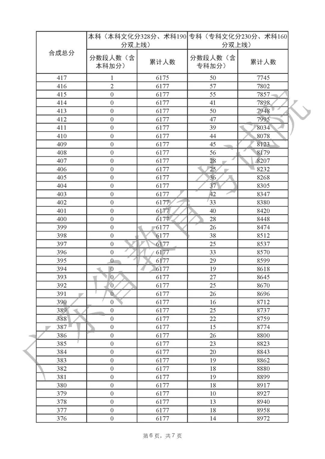 2022年广东高考“一分一段表”