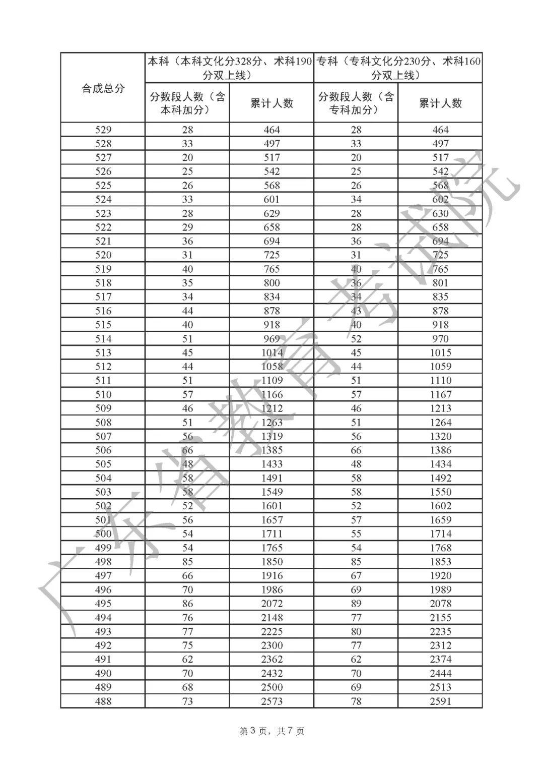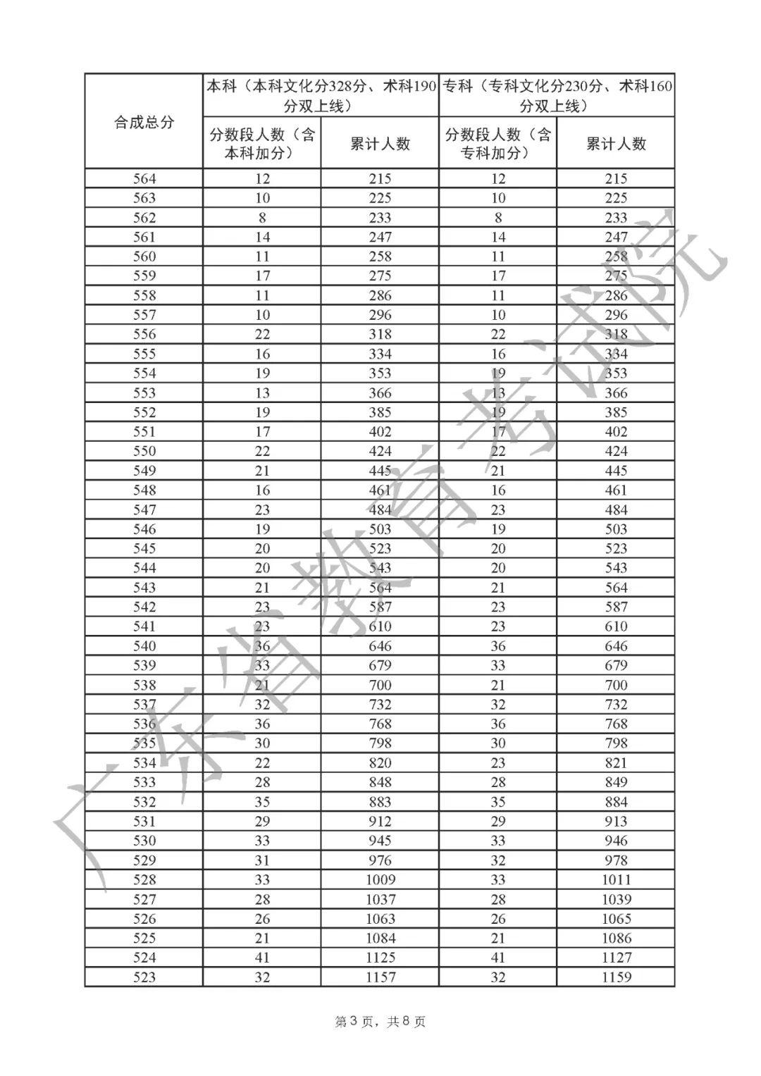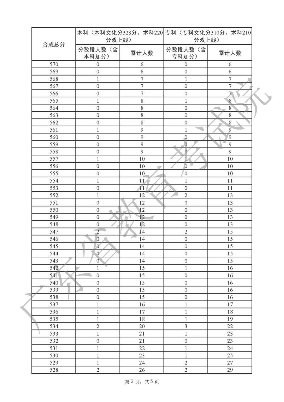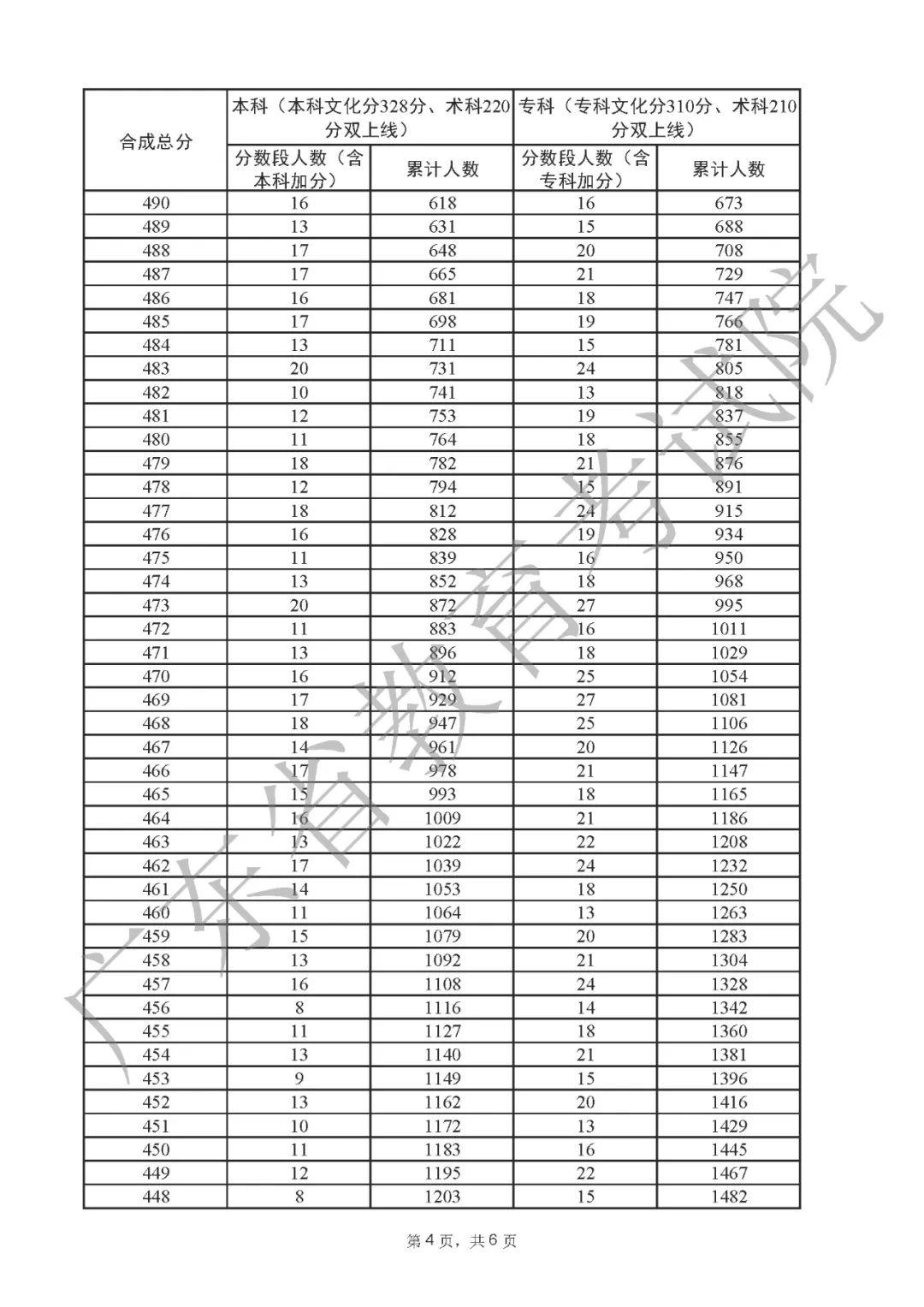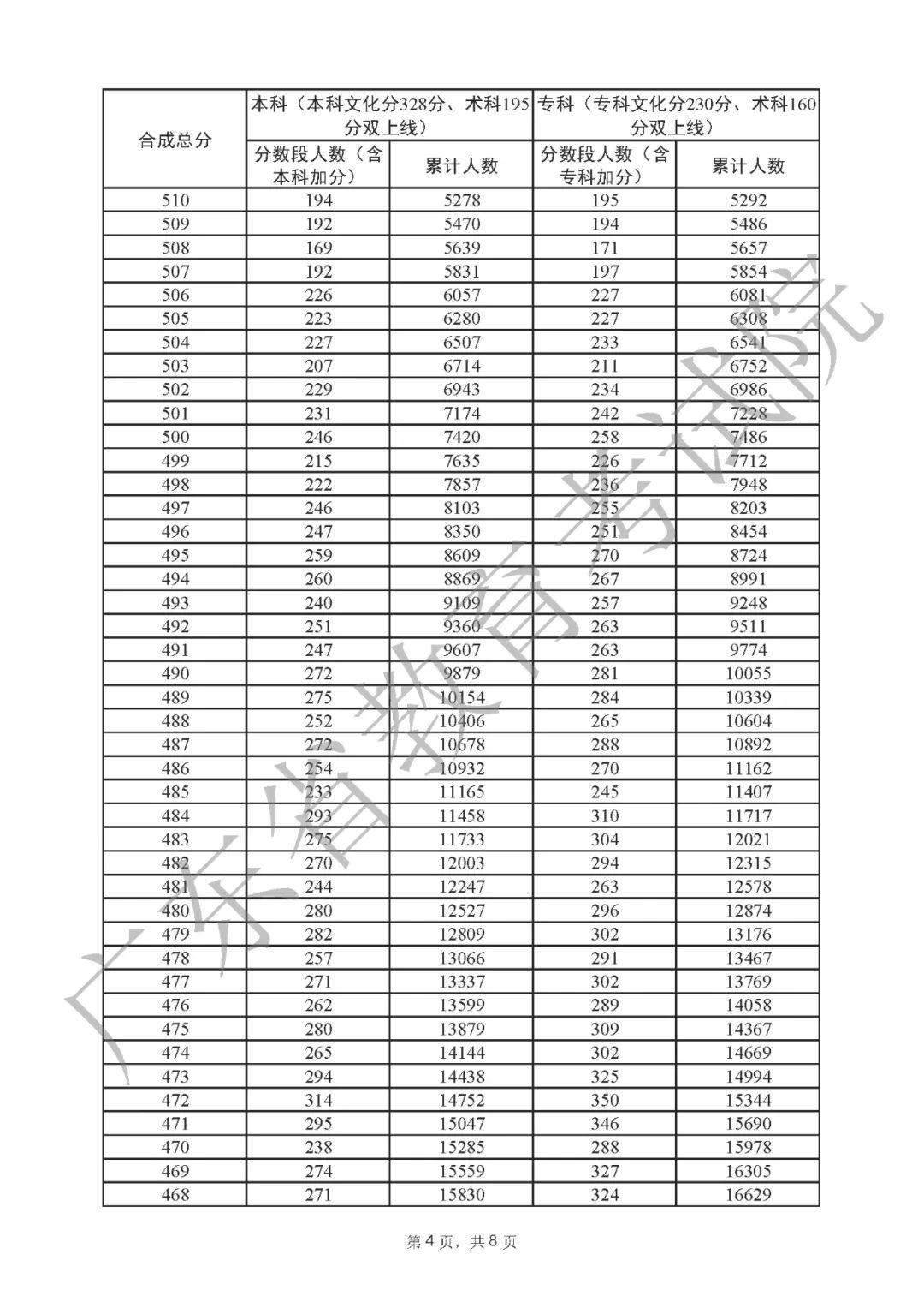 2022年广东高考“一分一段表”