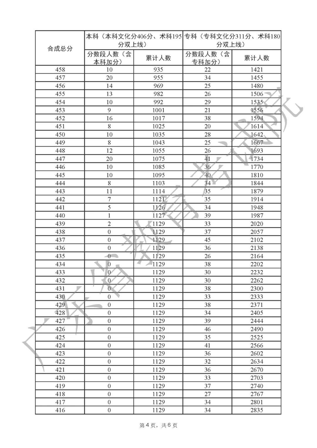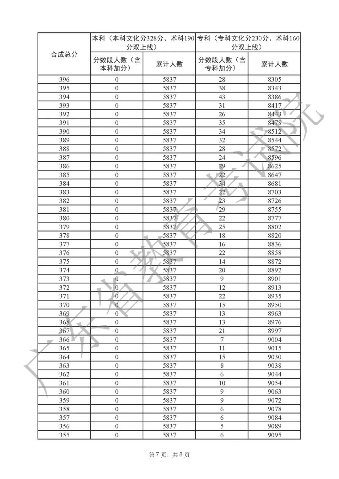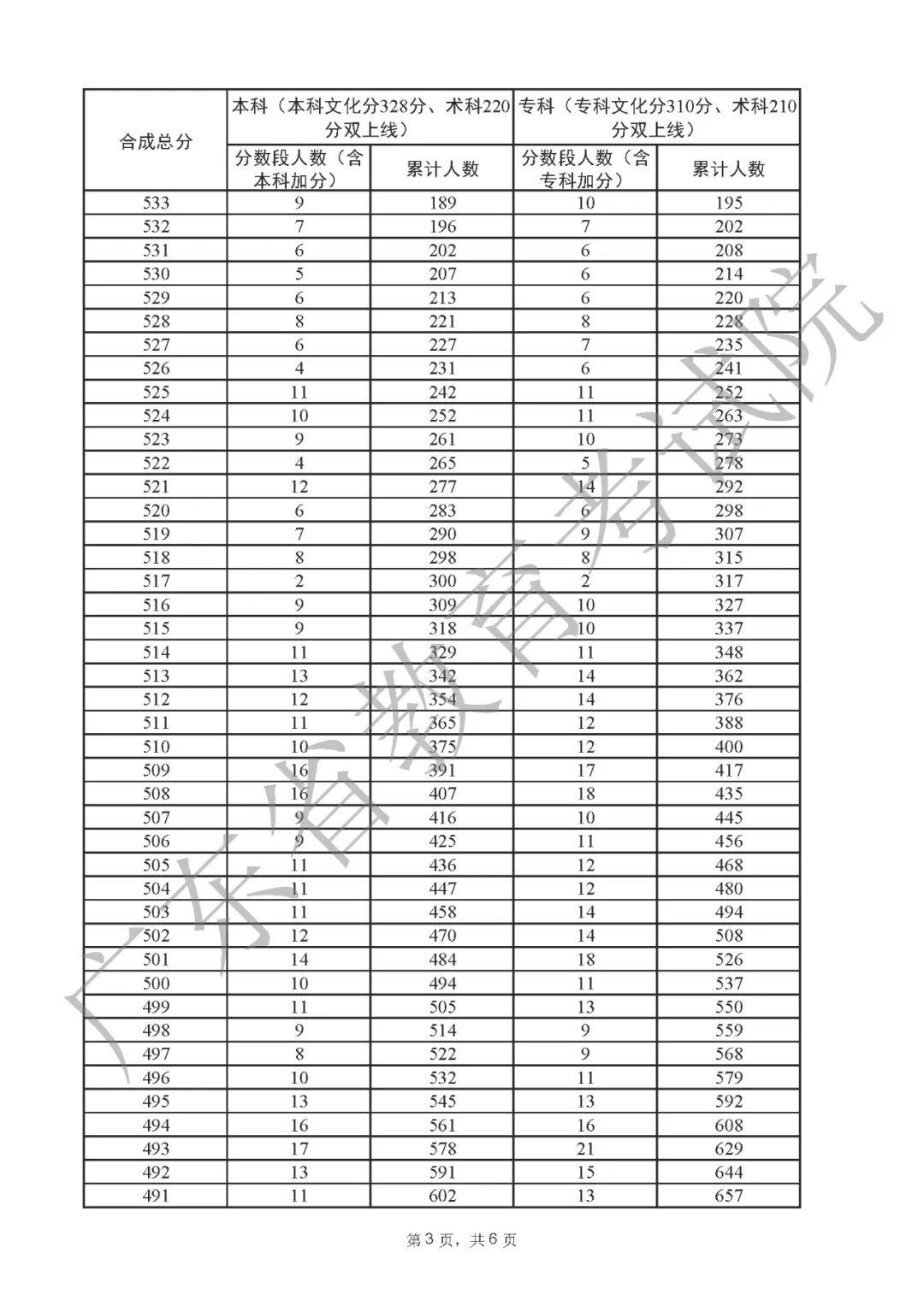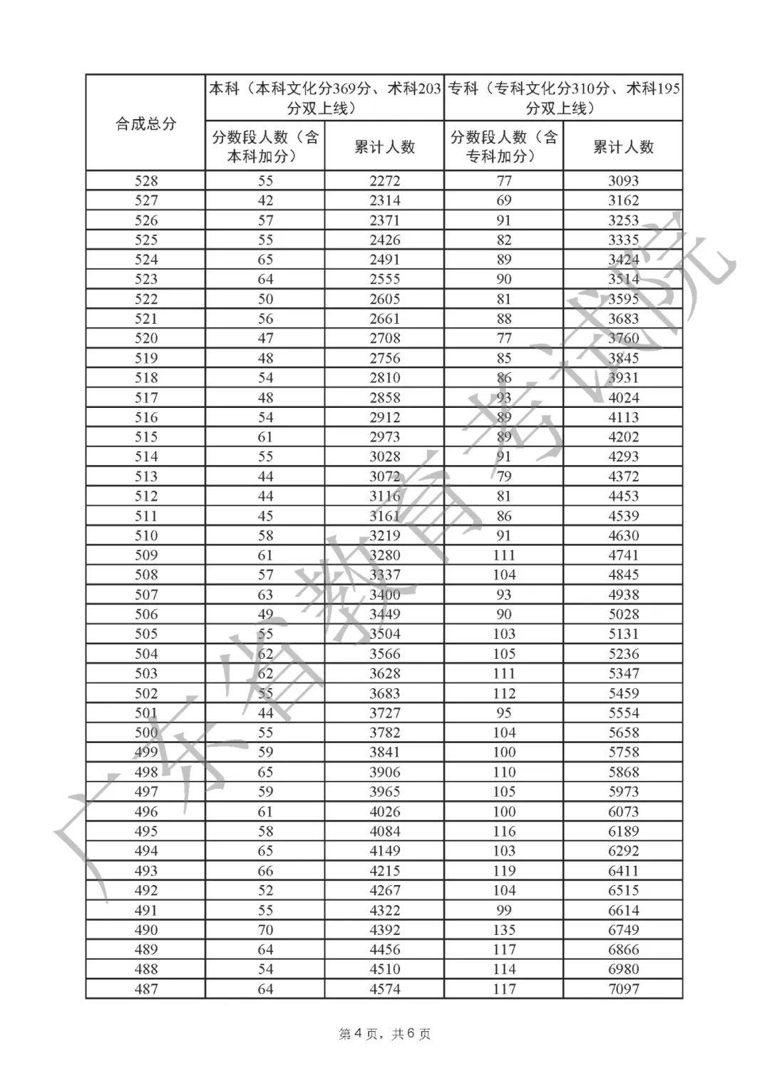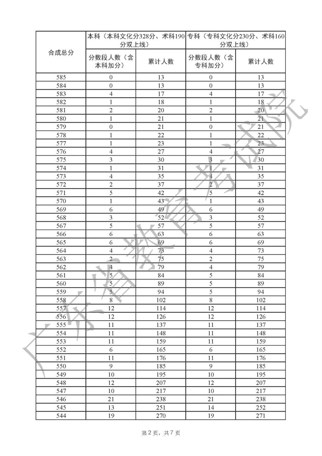 2022年广东高考“一分一段表”