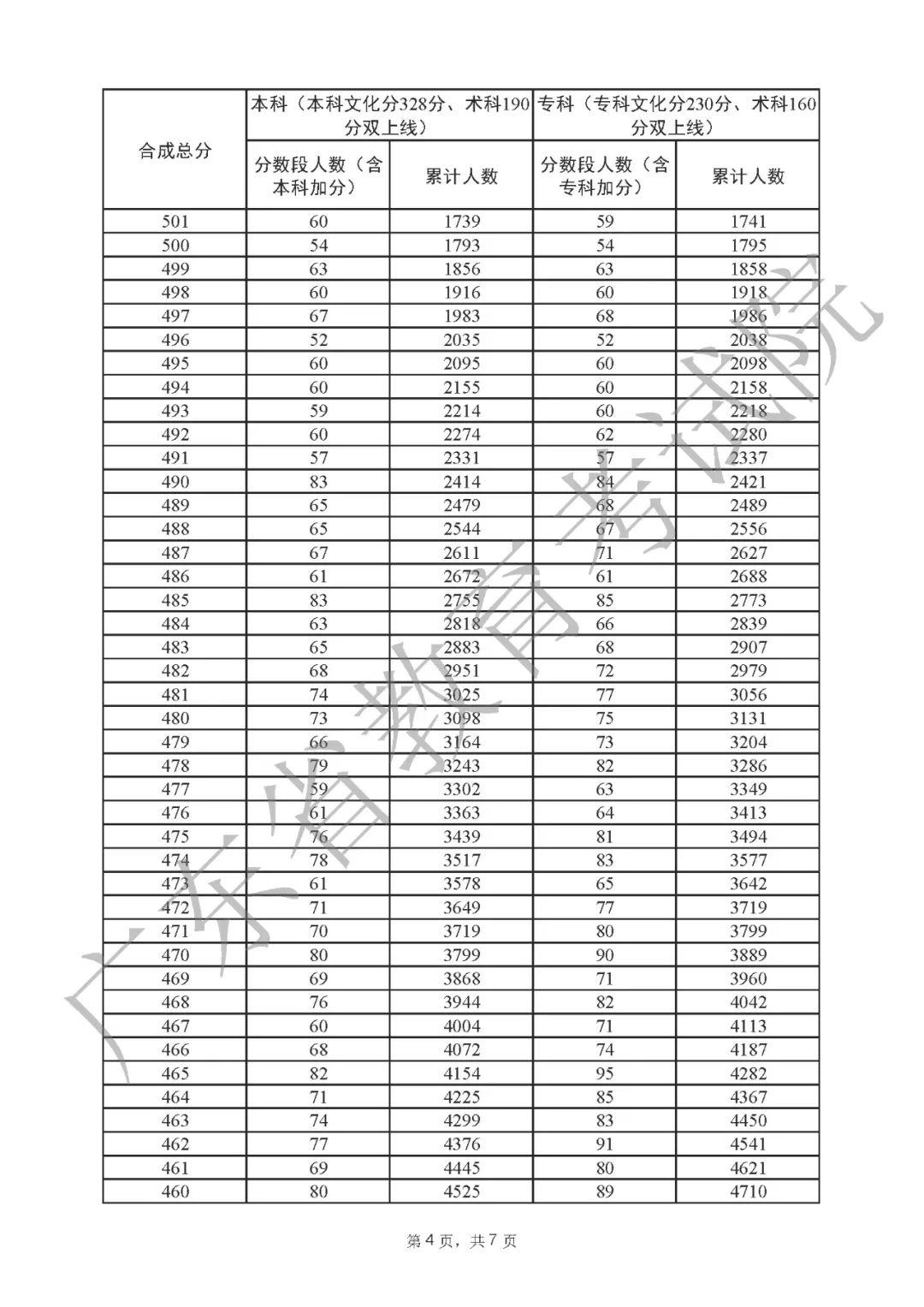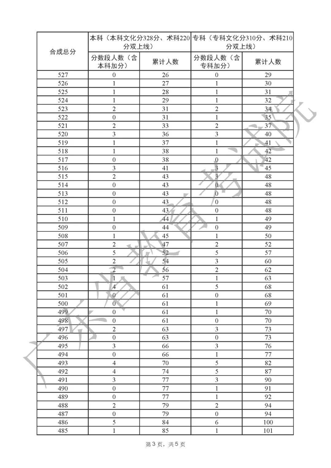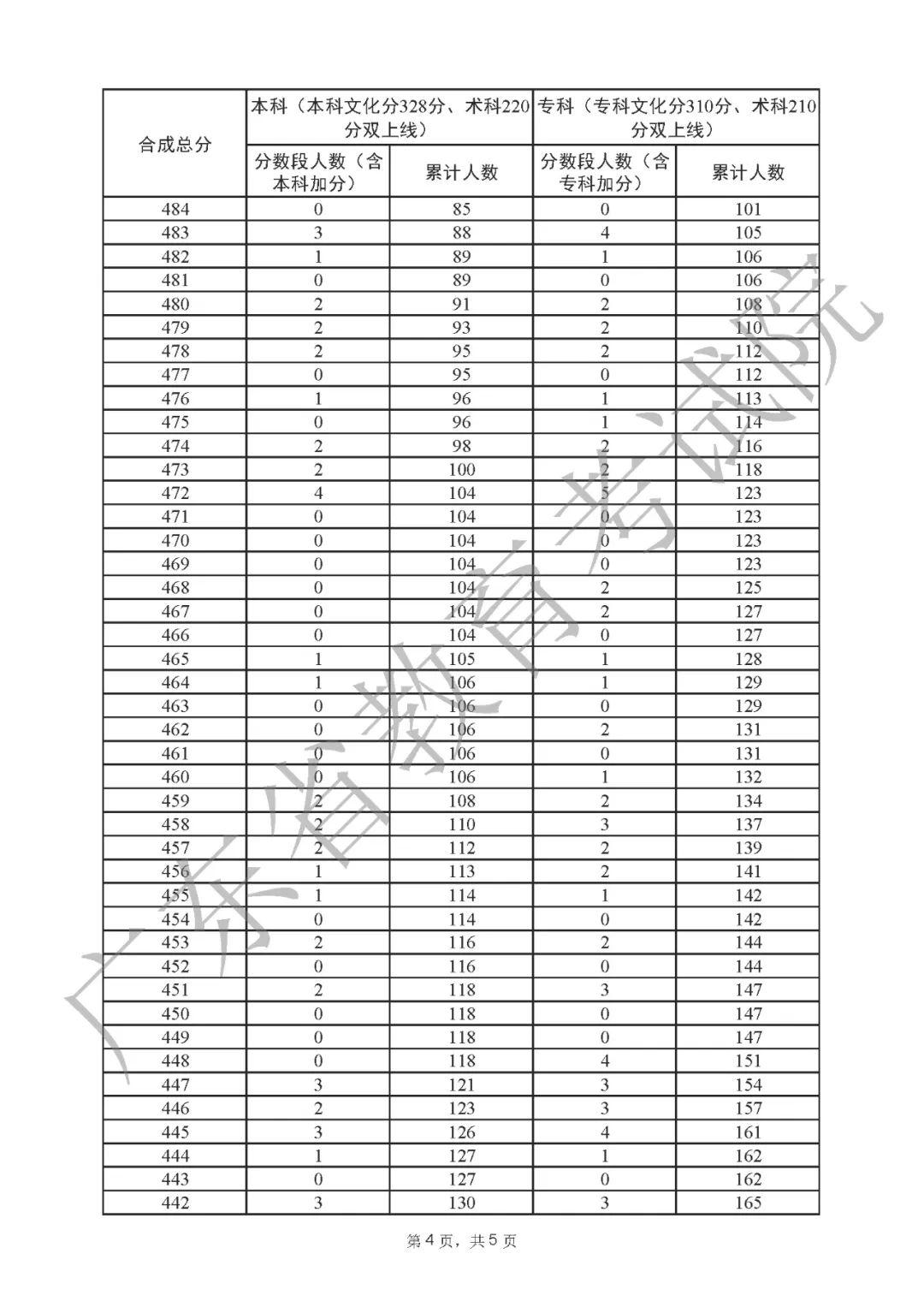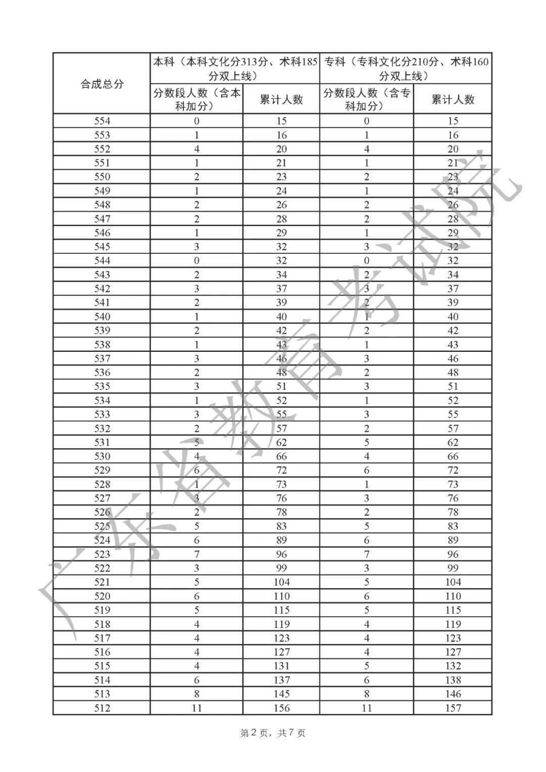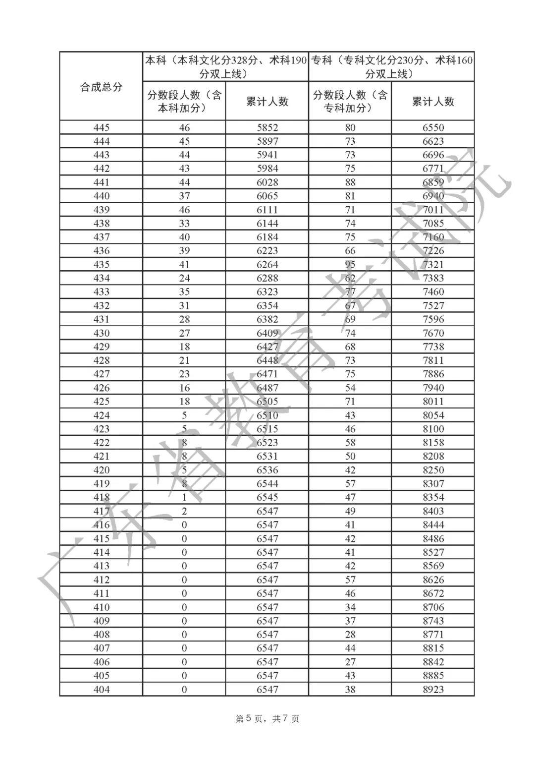 2022年广东高考“一分一段表”