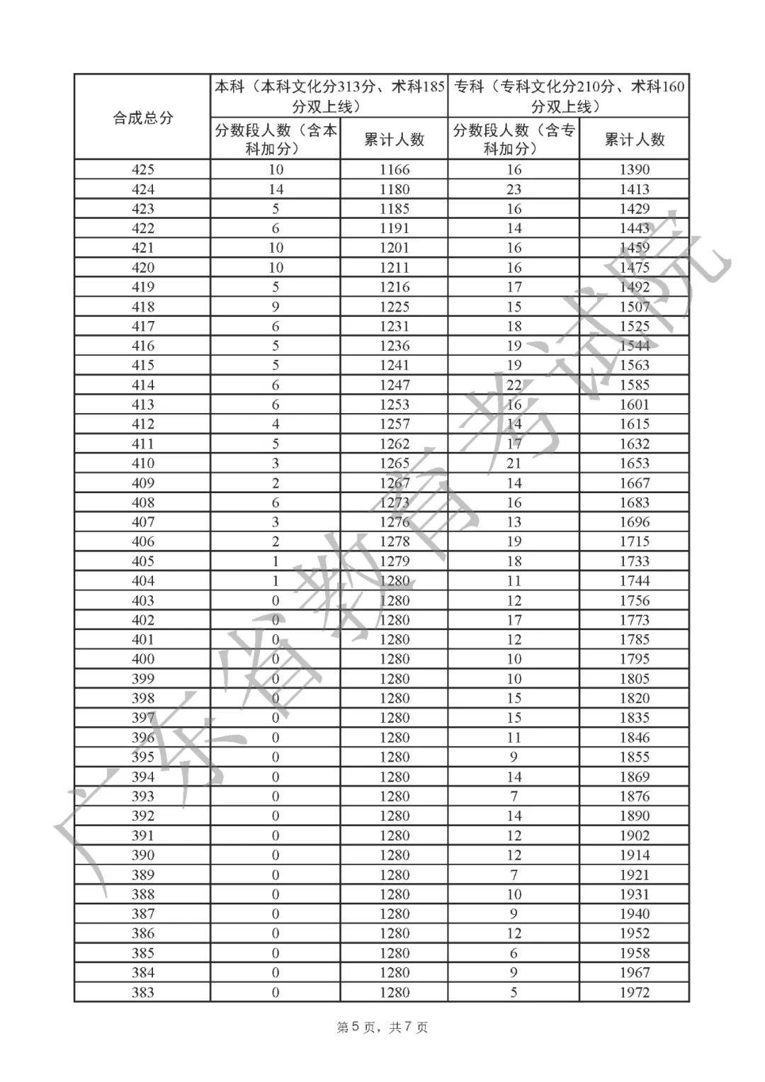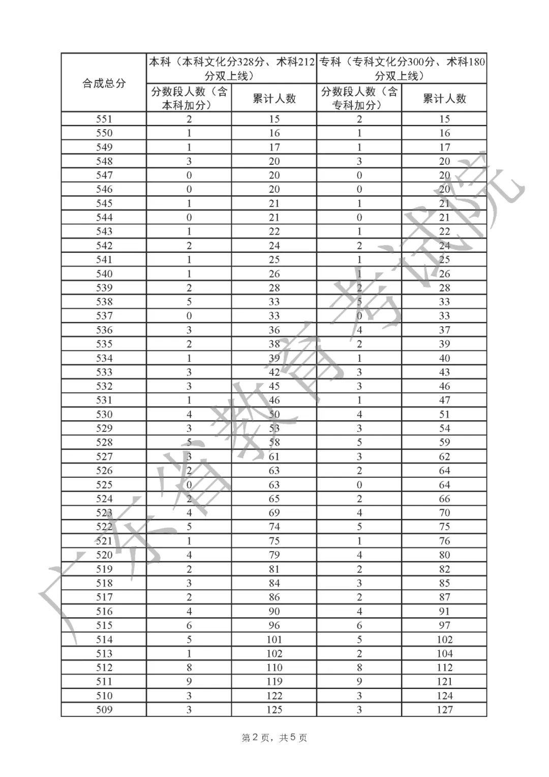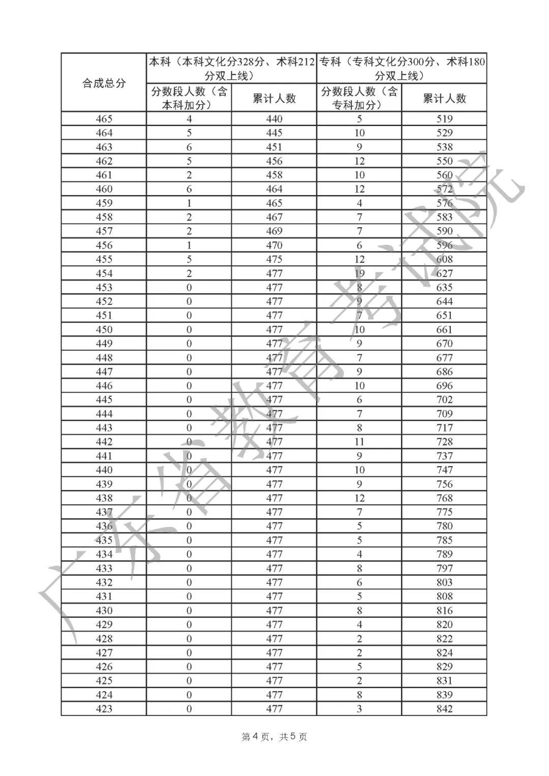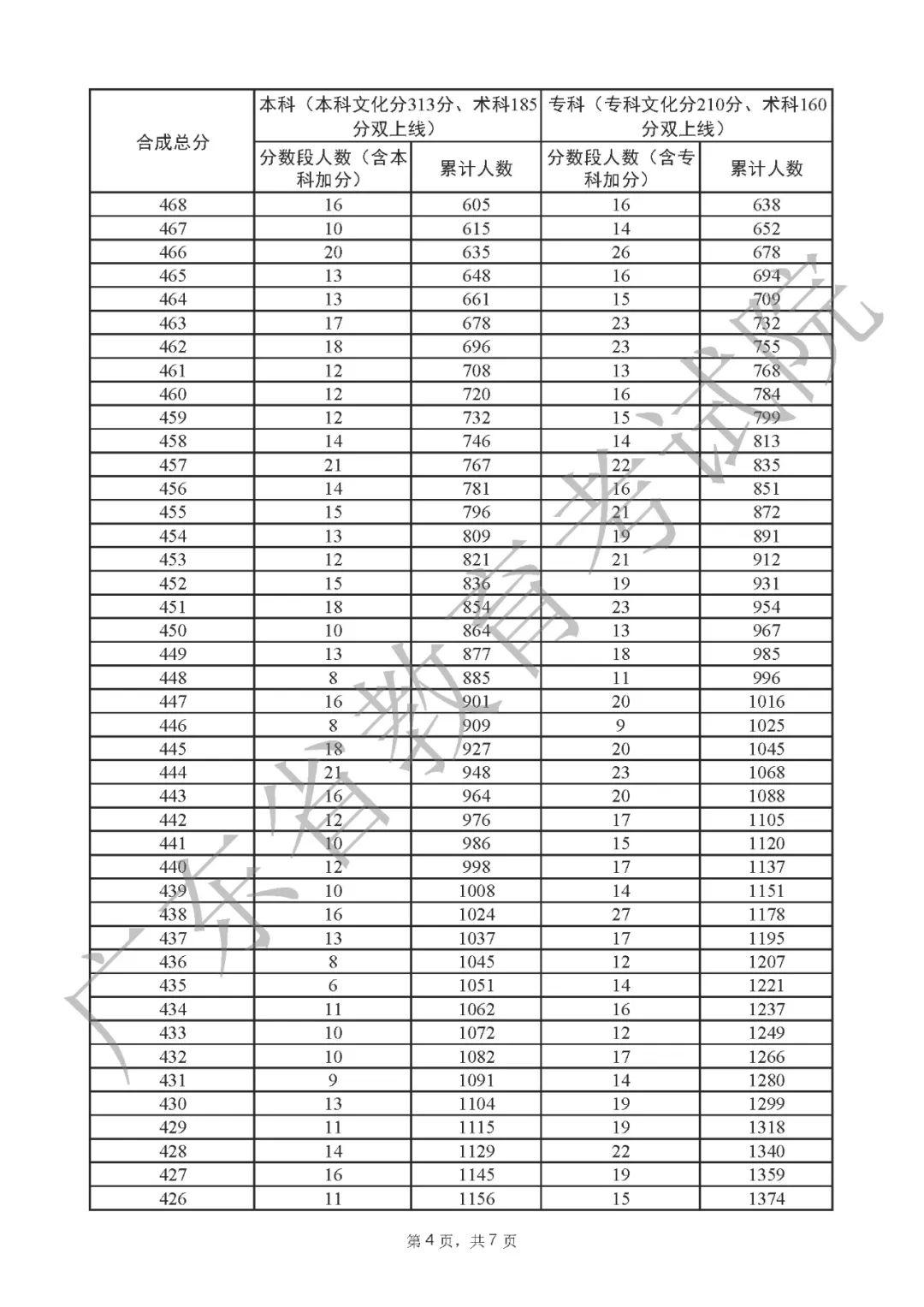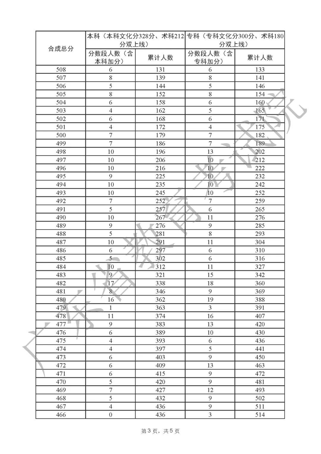 2022年广东高考“一分一段表”