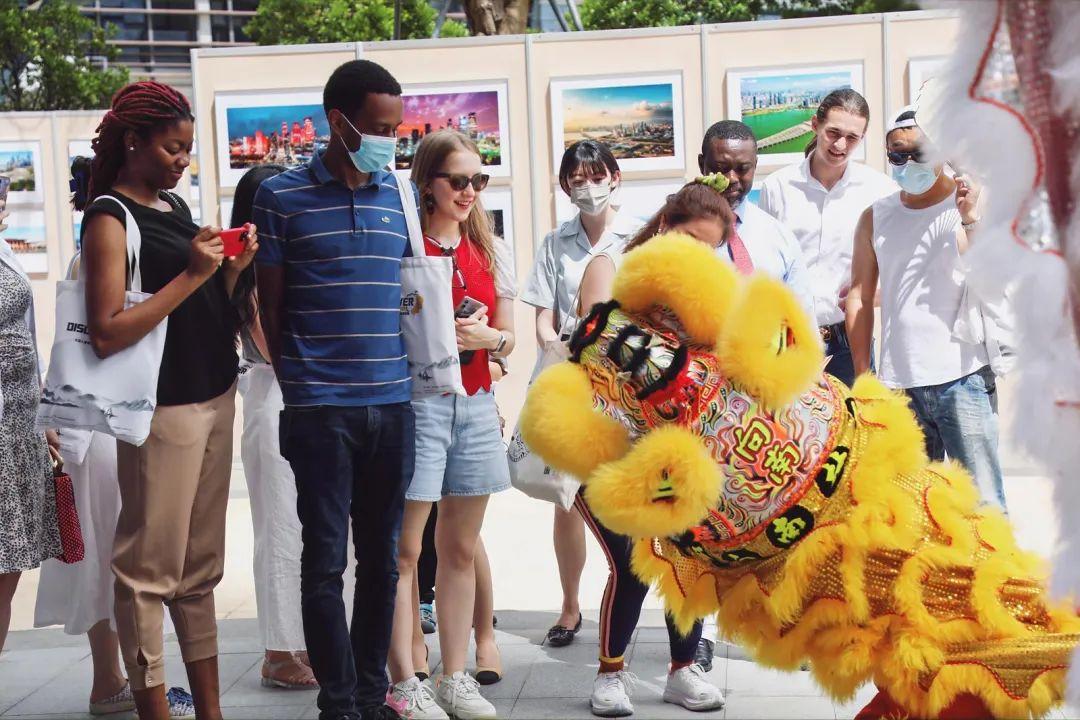 活动现场还安排了被列为市级非物质文化遗产的向南醒狮表演。威猛飒爽的醒狮,热闹的锣鼓声以及当地特色美食给外籍友人留下了深刻的印象。