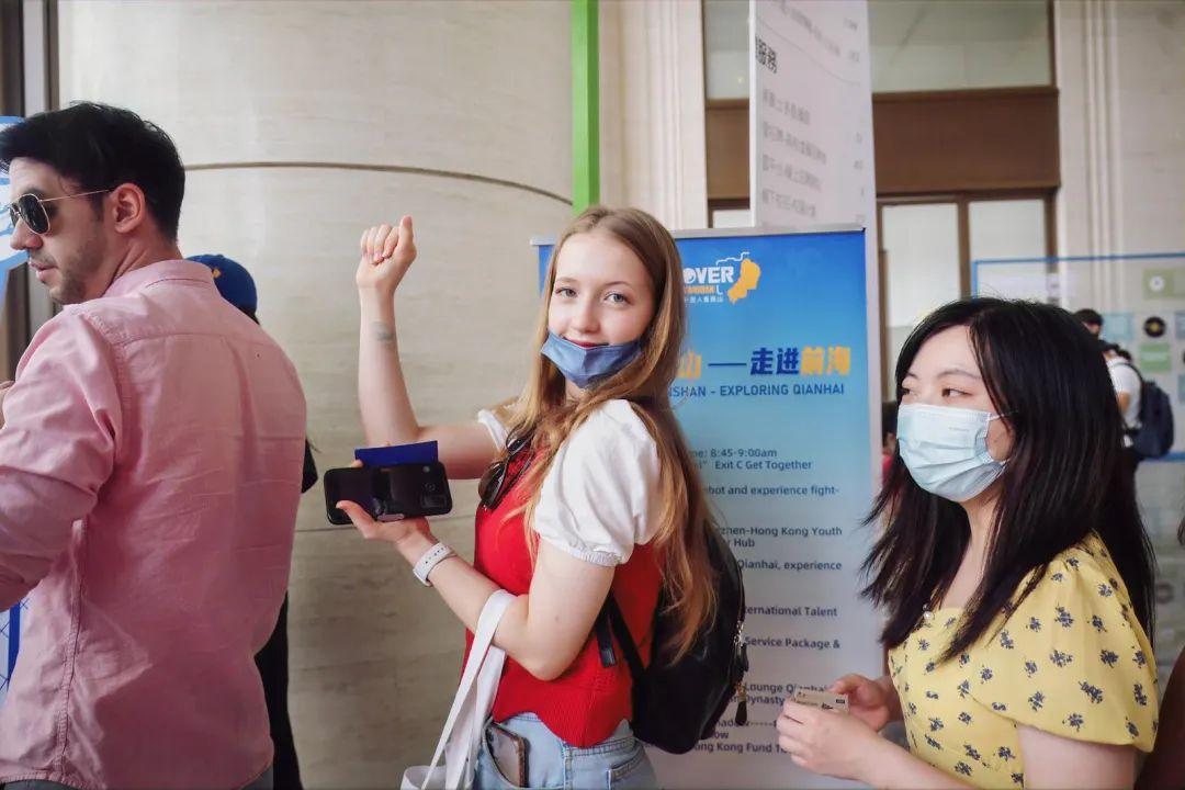 他们在拍照墙前争相打卡,留下自己来到前海的足迹。