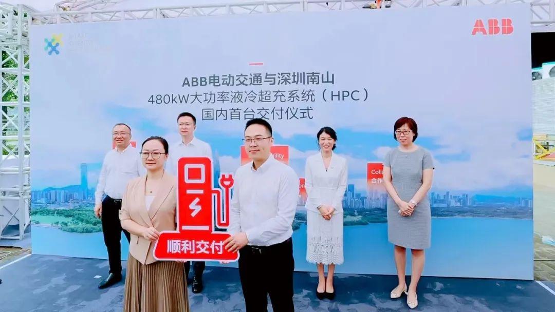 活动现场,ABB电动交通中国总部与南山区政府进行了首台HPC超充桩落成南山智园交付仪式。该超充桩是ABB电动交通的最新研发产品,在深圳本土完成自主研发制造,可实现充电5分钟续航200公里,并可同时为四辆车蓄能。