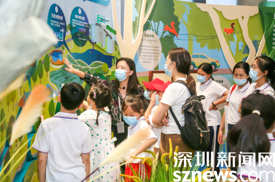 随后,20组家庭来到位于西丽生态公园內的南山区生活垃圾分类体验馆,在场馆讲解员的指引下,亲子家庭以打卡互动等形式,沿着场馆的“科普馆奇妙之旅”路线,参观了知识区、闯关区、绘画区、手工区、图书漂流区和厨余垃圾堆肥区等区域,了解垃圾分类投放、收运、处理的全过程,学习变废为宝、厨余堆肥等知识,提高垃圾分类、节约资源意识。