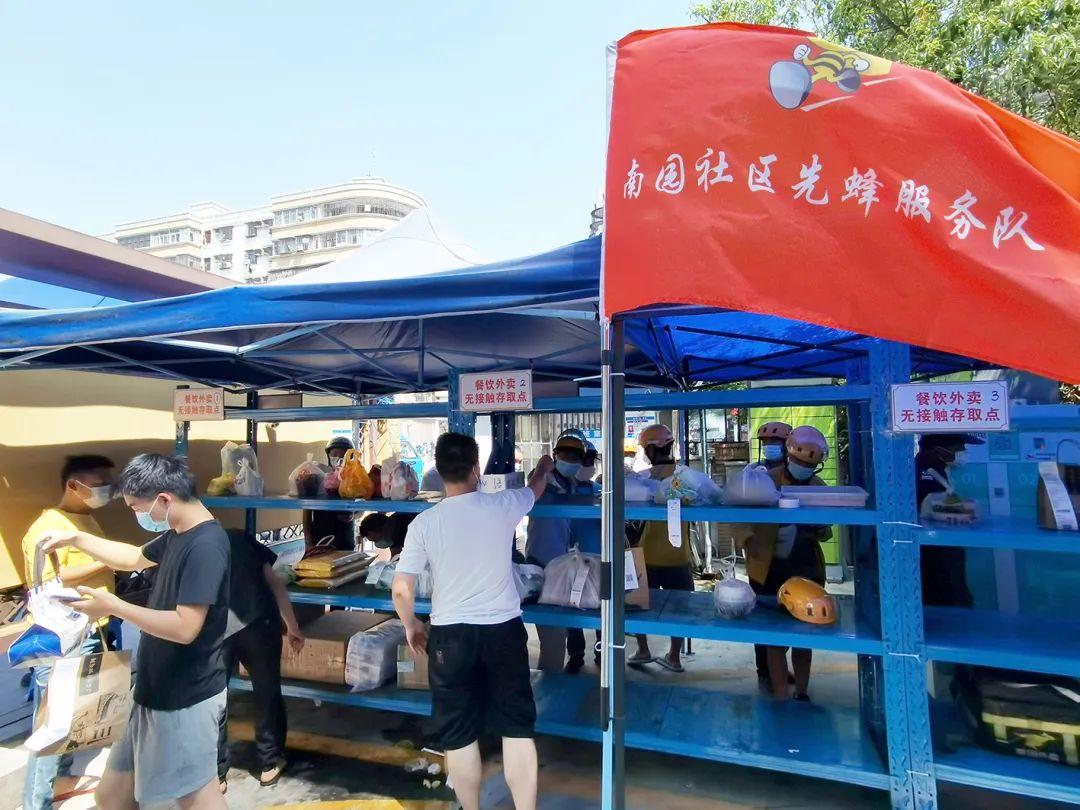 ▲南山街道组建社区先蜂服务队,快递、外卖骑手积极投身疫情防控志愿服务。