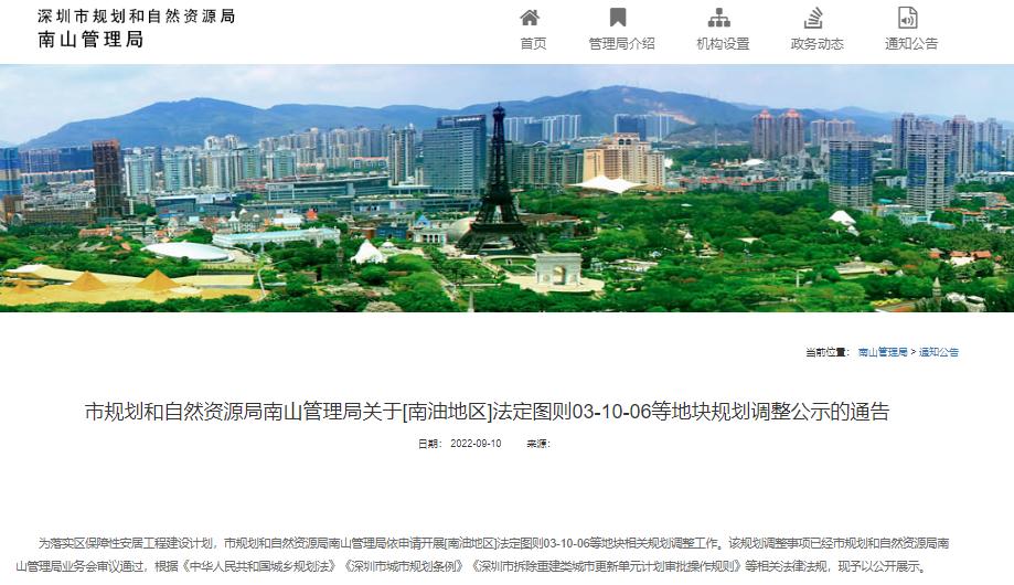 ▲南油地区法定图则03-10-06等地块规划调整用地示意图