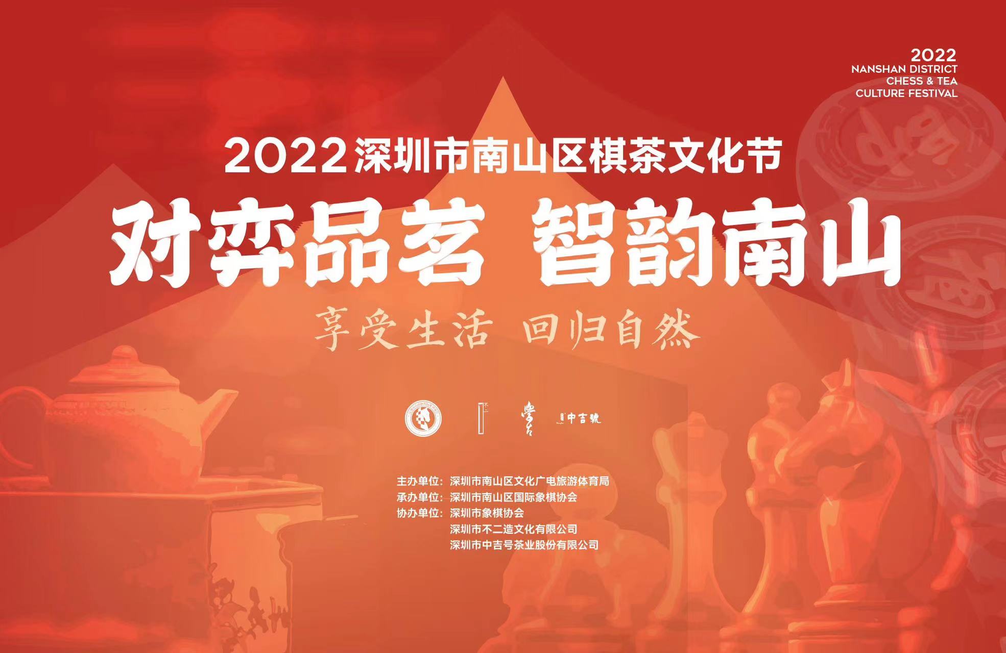 2022南山区棋茶文化节由南山区文化广电旅游体育局主办,南山区国际象棋协会承办,深圳市象棋协会、深圳市不二造文化有限公司、深圳市中吉号茶业股份有限公司协办。