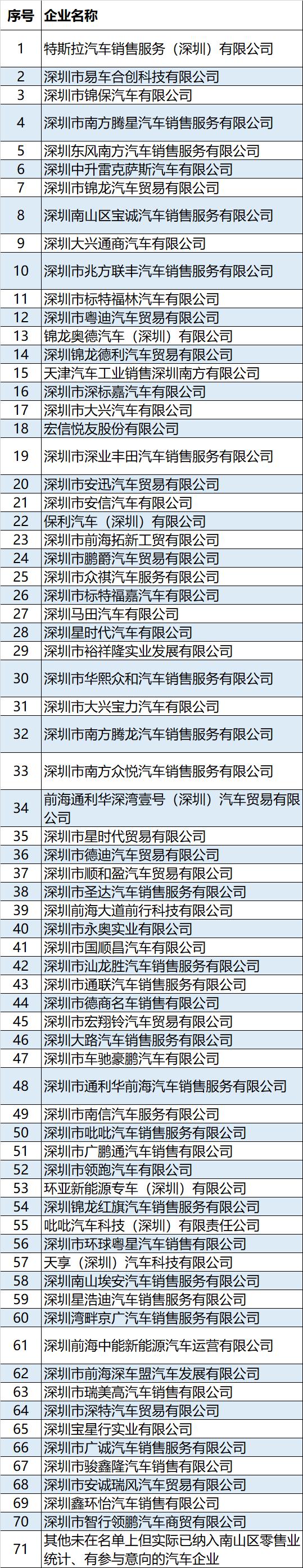 (一)活动期间在参与活动的南山区纳统汽车经销企业(行业代码为“5261”,名单见下表)购买汽车、满足申报条件的个人消费者。
