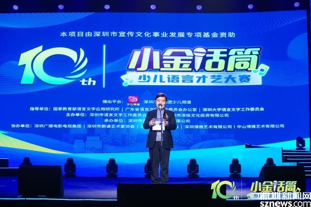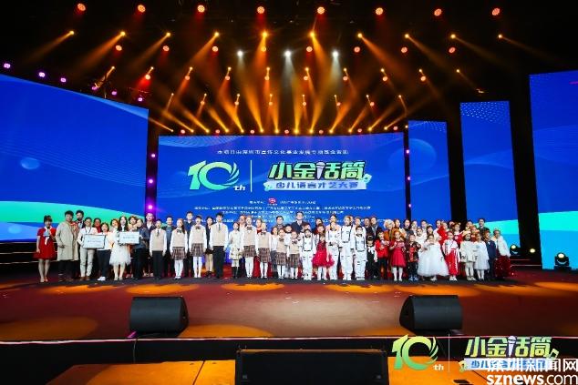 读特客户端•深圳新闻网2022年12月28日讯 第十届“小金话筒”少儿语言才艺大赛颁奖典礼于12月17日在深圳广播电影电视集团演播厅成功落下帷幕。 张晋文为颁奖典礼致辞 演出开始前,由深圳市文联党组成员、专职副主席张晋文为颁奖晚会致辞,他充分肯定了“小金话筒”大赛举办十年来为深圳市乃至粤港澳大湾区少儿语言教育做出的贡献,对大赛在促进大湾区文化交流、城市精神文明建设的工作中所发挥的积极作用给予高度赞扬;张主席指出,本届大赛呈现出原创性高、水准高、响应度高的“三高”特点。首先本届参赛选手的原创作品质量大幅提升,优秀现实题材作品频出,体现出新时代少年儿童的精神面貌;其次是选手表演水准强,选手们的基本功和舞台表现力较往年有很大提高;最后是参与范围广,本届报名参赛的选手中不仅有来自大湾区的选手,还收到了全国多个省市区的选手报名,规模达历届最大,展示出我市少儿语言事业口碑品牌的号召力和蓬勃生命力,并表示对大赛未来的发展寄予无限的期望。 本届颁奖典礼组委会特邀请近百名第十届“小金话筒”少儿语言才艺大赛获奖选手和多位优秀语言教师、知名朗诵家,携手多家优秀艺术机构、优秀汉语言示范基地共同筹备策划了颁奖典礼中的经典朗诵、快板、歌舞、模仿秀等多个精彩节目,还设置了现场直播,让场外的观众也能同步了解到当下大湾区少年儿童语言的艺术成果。 典礼演出由街舞表演《一起跳舞吧》正式拉开帷幕,孩子们热情奔放活力满满,踏着激昂的节拍在小金话筒的舞台上尽情绽放。 典礼中各类型节目精彩纷呈,集体朗诵《少年有志筑梦苍穹》《最美中国话》献礼“小金话筒”十周年;模仿秀《模拟主持》、快板《奇奇的日记》展现了选手们极高的舞台水平; 由评委代表唐俊、胡冰老师带来的散文诗朗诵《母亲是一种岁月》将舞台氛围推向又一次高潮; 舞蹈《俏花旦》和朗诵《读中国》赢得了现场观众的阵阵掌声。 尤其值得一提的是,时值“小金话筒”赛事十周年,为庆祝“小金话筒”十周岁生日,承办方深圳市文化企业发展有限公司精心打造了小金话筒十周年特别回顾节目,邀请了“小金话筒”往届获奖选手在“云端”纷纷为“小金话筒”献上祝福。最后,由集体朗诵《小理想大梦想》为第十届“小金话筒”少儿语言才艺大赛颁奖典礼画上了圆满句号。 本届大赛的成功举办,受到了深圳市宣传文化事业发展专项基金的大力支持以及社会各界的充分关注。十年铸就梦想,十年砥砺前行,十年来“小金话筒”少儿语言才艺大赛一直严格遵守“公益性、权威性、标杆性”的办赛原则,为语言事业培养了一届又一届后浪人才,为语言爱好者们提供了广阔的交流平台,受到了参赛选手及社会各界的充分肯定。未来,大赛组委会将继续努力,力争打造以“深圳标准”为核心的语言文化品牌,不断将该赛事打造成深圳乃至大湾区最为闪亮的文化名片。