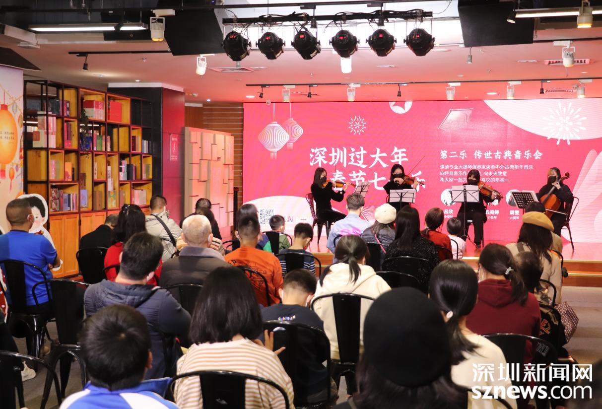 大年初一,书城筹划了一场“传世古典音乐会”,邀请四位提琴演奏家,为市民们献上了《花好月圆》《蓝色多瑙河》《饮酒歌》等美妙动听的弦乐四重奏。活动现场座无虚席,优雅的乐曲萦绕于书城三楼活动区,观众们都沉浸其中,路过的市民纷纷驻足聆听。
