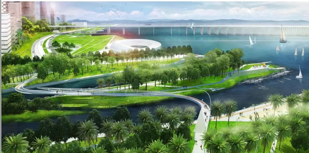 一河两岸一岛多层级绿地的带状城市公园