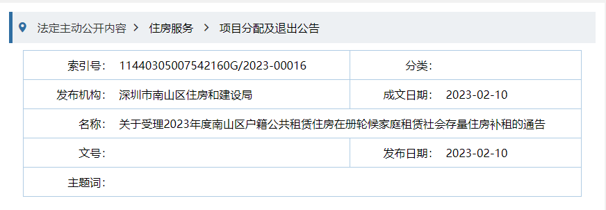 本次补租受理对象为2月9日18时属于南山区户籍,且同时在市保障性住房统一轮候系统登记为南山区户籍的公共租赁住房在册轮候家庭。