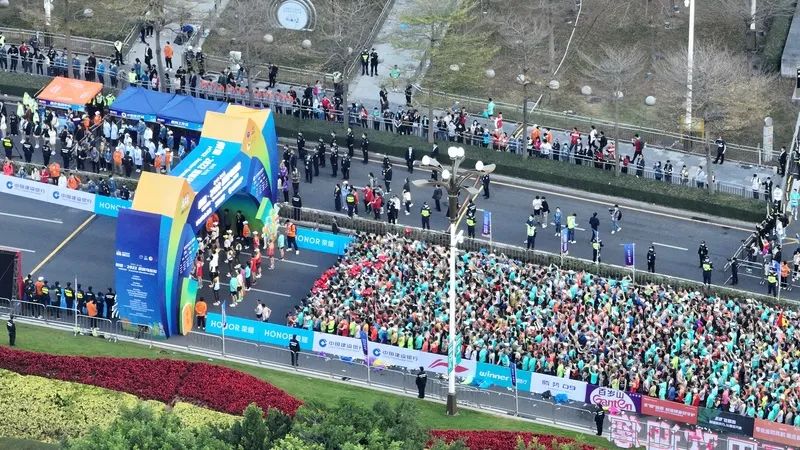 新时代,新深马。2月19日7时30分,荣耀·2022深圳马拉松在深圳市民中心广场开赛。20000名参赛选手迎着朝阳奔跑,开启今年深圳大型赛事活动的新篇章。今年深马以全新的主题内涵、赛事路线、服务品质为城市增光添彩,为民生健康幸福助力,全域全景展示活力深圳。
