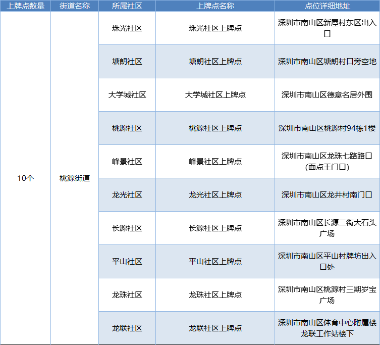 南山新增75处上牌服务点表单