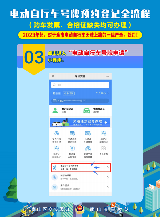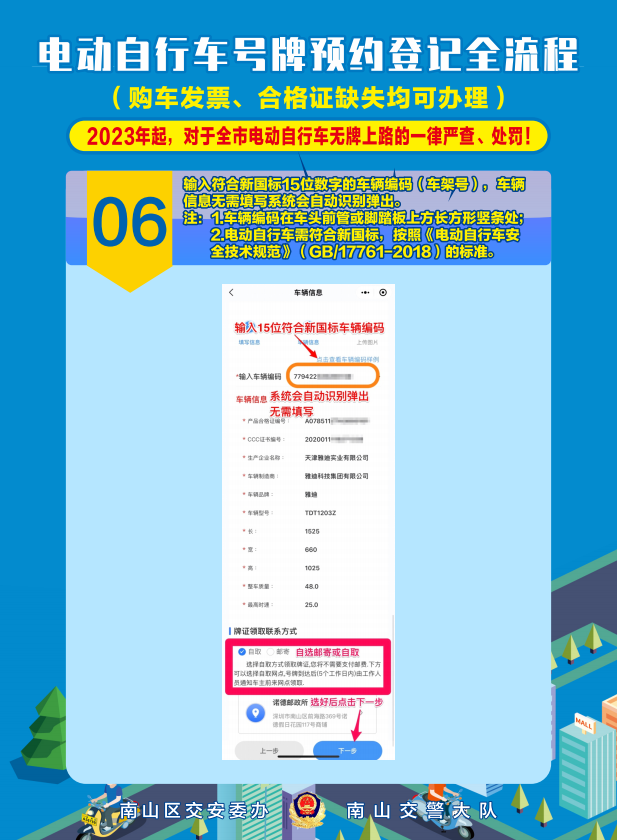 近日,南山电动自行车上牌