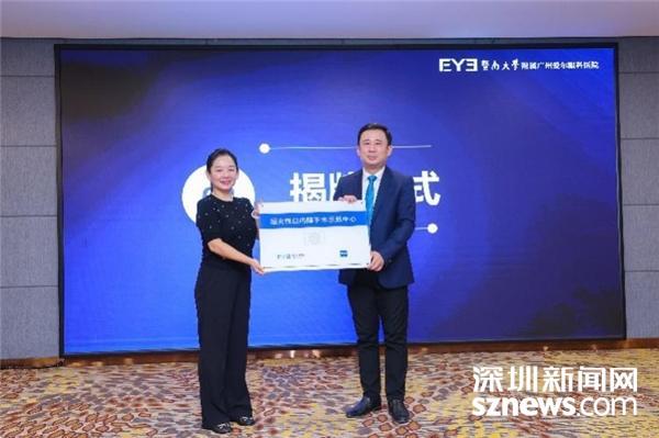 广州爱尔眼科医院白内障青光眼科主任武哲明与蔡司医疗部两广晶体区域经理贺月为“屈光性白内障手术示范中心”揭牌